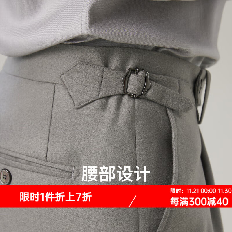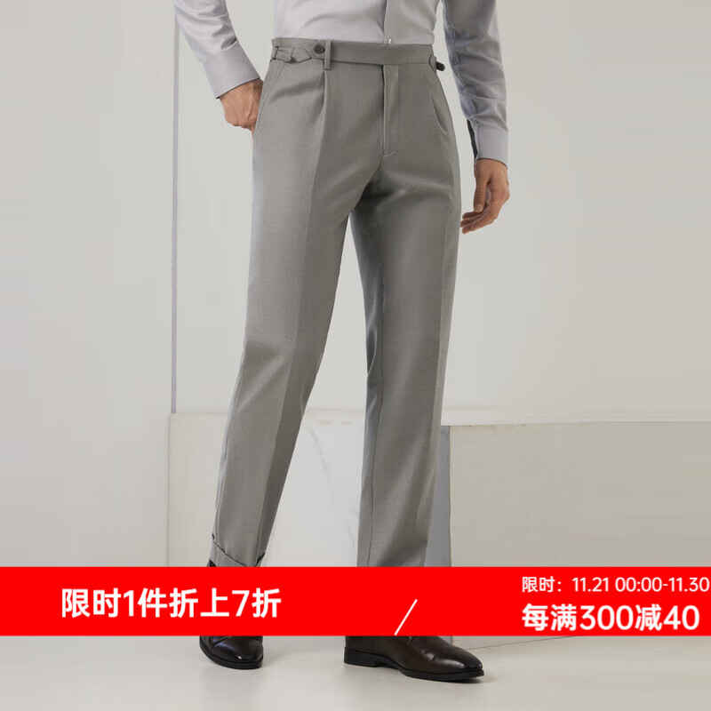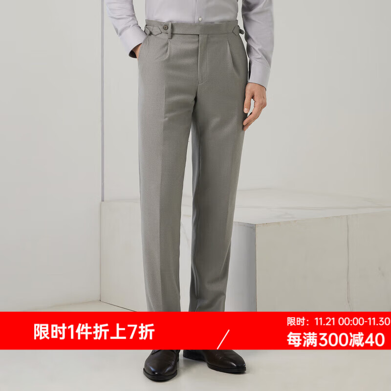 依文81绵羊毛休闲裤男秋季山羊绒直筒男裤桑蚕丝商务休闲裤子男 棕色 027