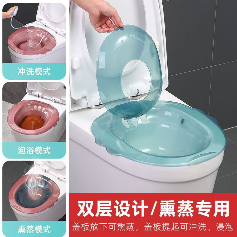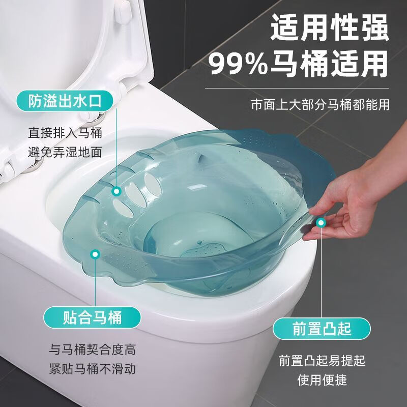 马桶坐浴盆妇科洗屁盆通用型马桶新款熏蒸盆泡药盆大人女士 透明蓝色 升级第六代 通用款