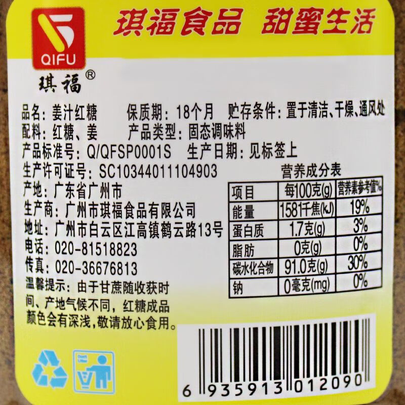 可局琪福姜汁红糖350克/罐固体调味料 350g