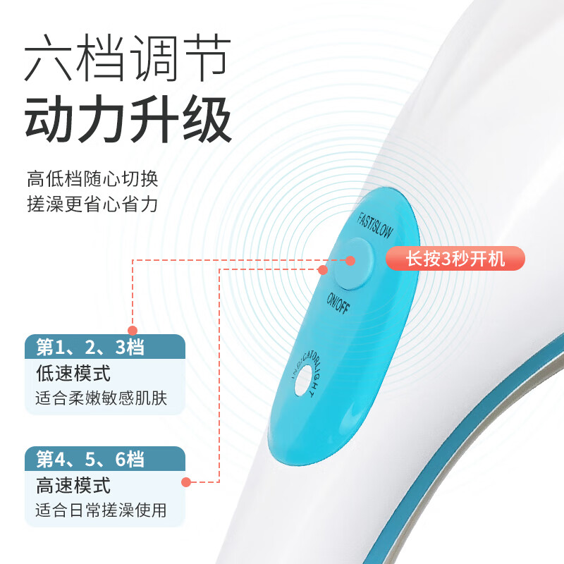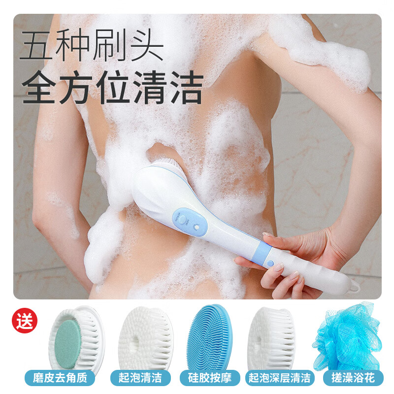 尹秀全自动电动沐浴洗澡刷后背懒人搓澡搓灰软毛刷子长柄擦背搓背神器 全自动电动刷-粉色USB充电 无规格