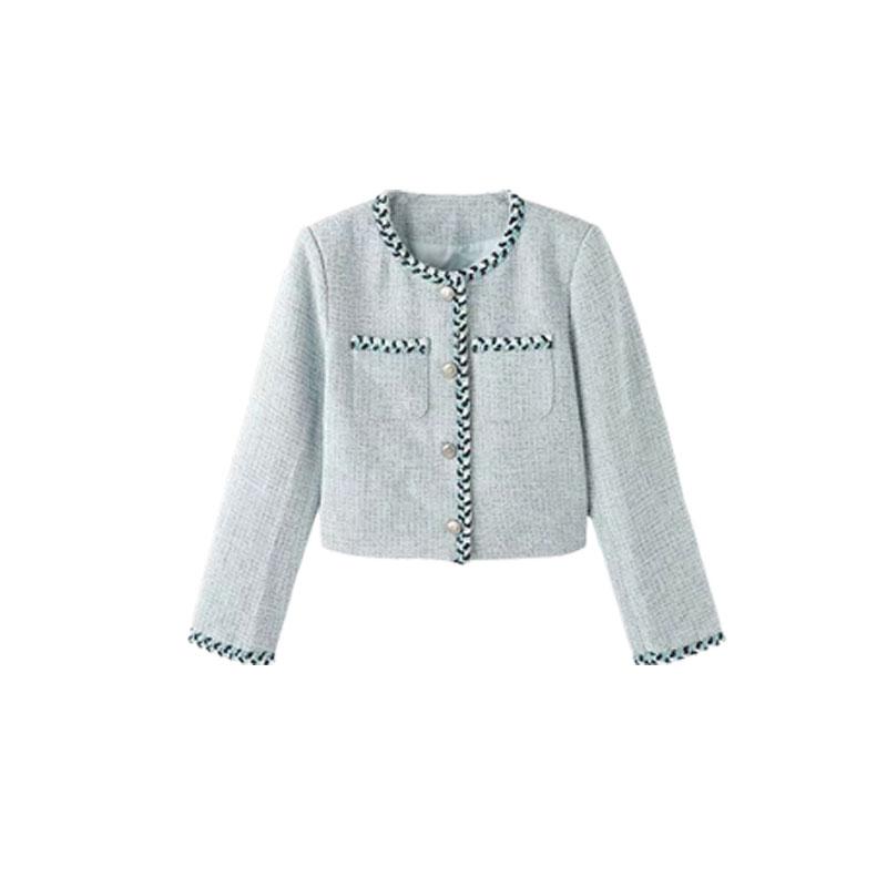 富家千金小香风蓝色高级感上衣女秋季新款法式气质宽松短款外套