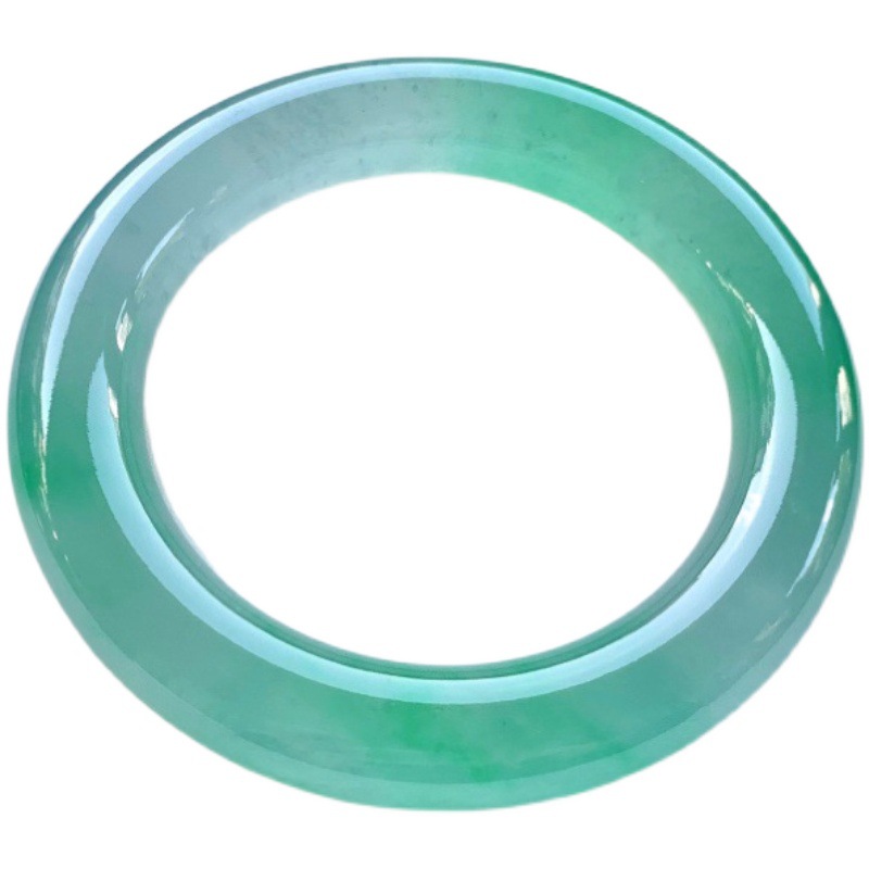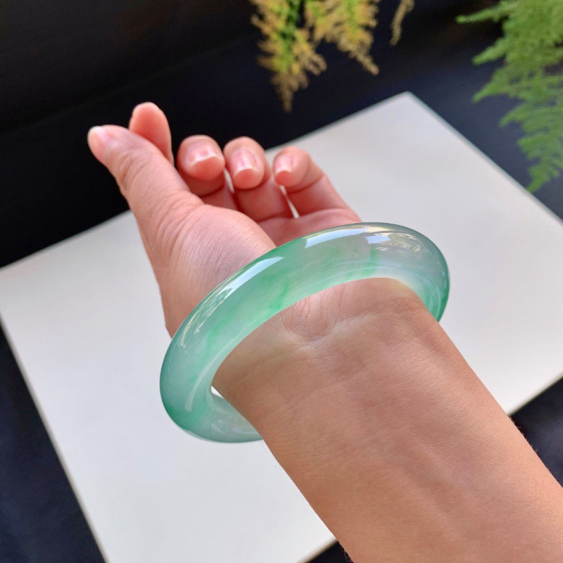 冰种圆条翡翠手镯天然缅甸老坑a货晴水底阳绿飘花翡翠玉手镯女款