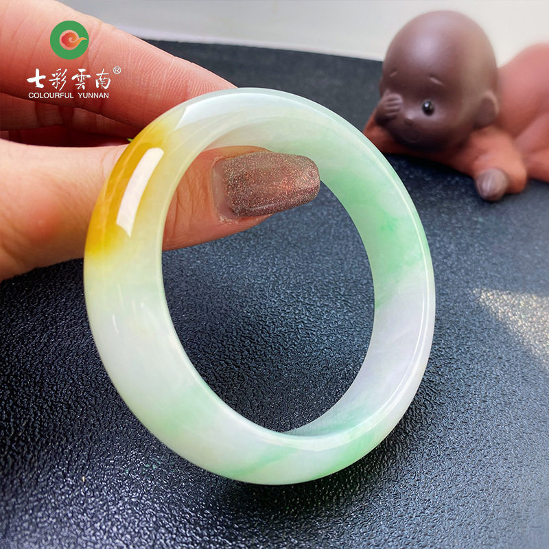 七彩云南缅甸A货天然翡翠福禄寿手镯一物一证支持复检(已售)