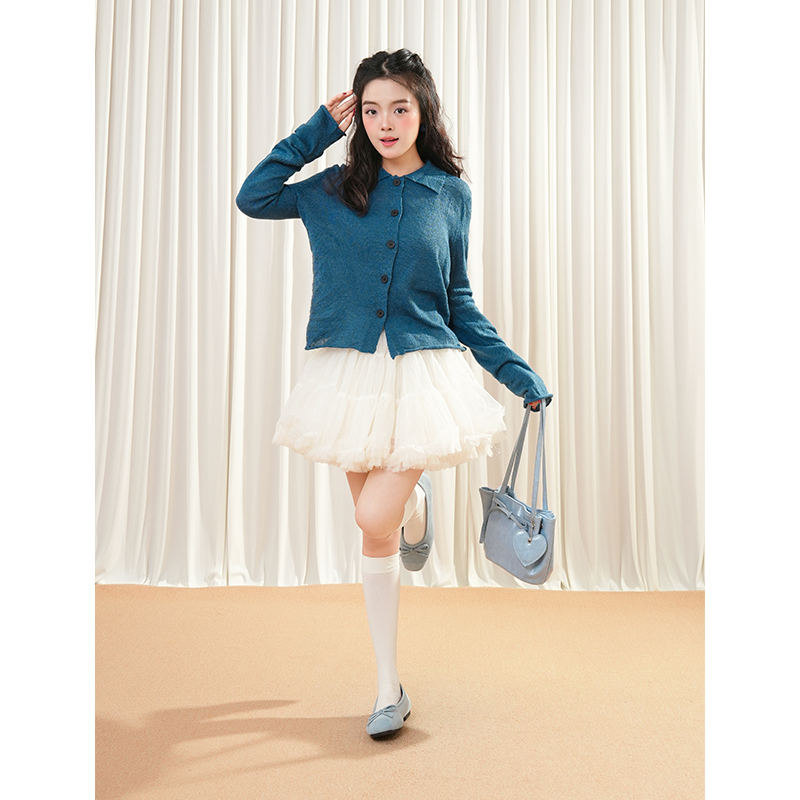 气质名媛高端女神范漂亮独特高级感蓝色针织衫半身裙两件套装女春