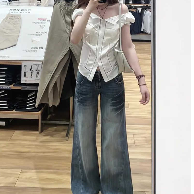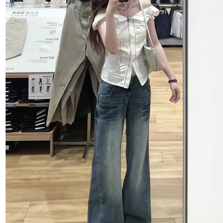 首页> 女装> 美式复古磨白低腰牛仔裤女夏季2025新款宽松直筒阔腿拖地梧桐裤子