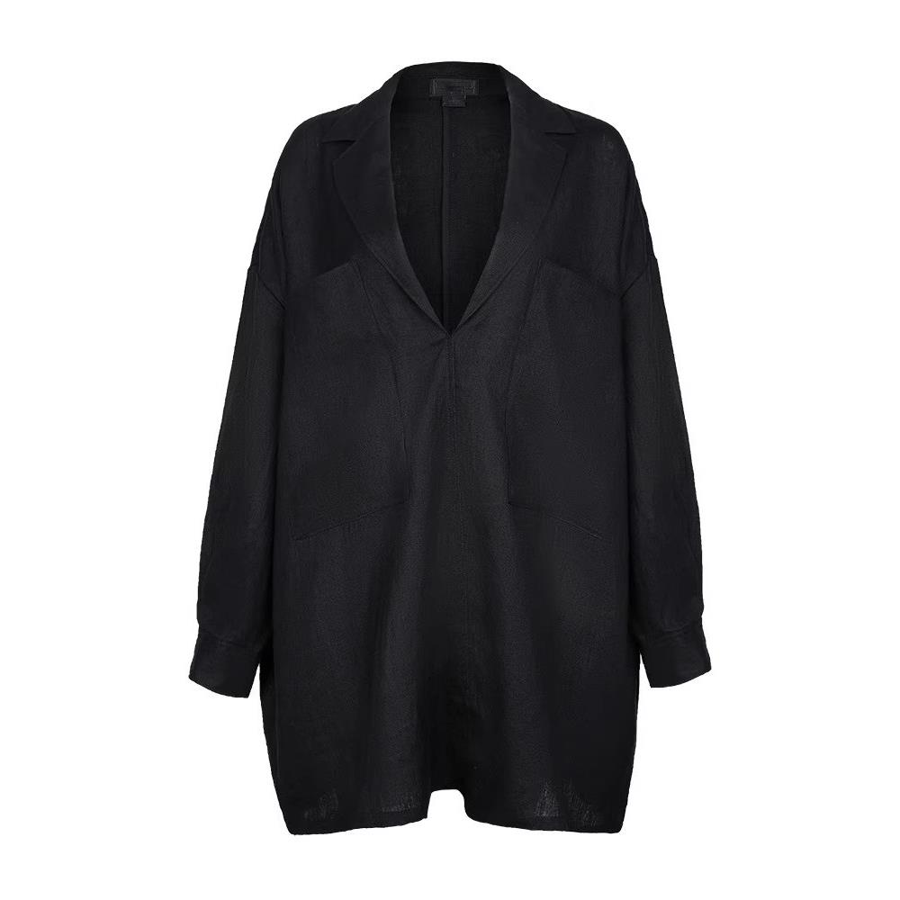 法式v领宽松衬衫连衣裙女薄夏季时髦小众设计感中长款衬衣防晒衫