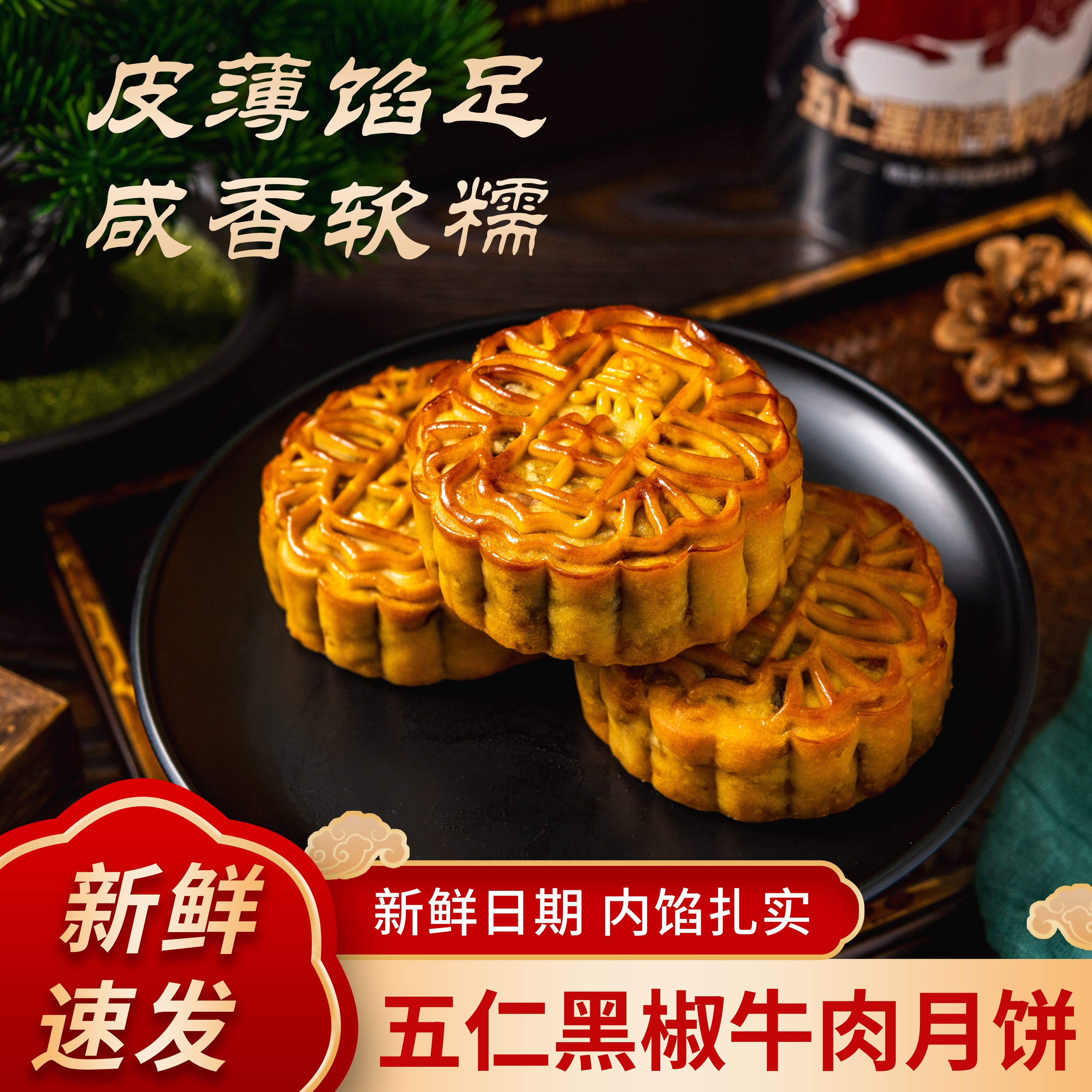 麦鲜郎广式五仁黑椒牛肉/叉烧/冬蓉/红豆月饼多种口味老味道送礼