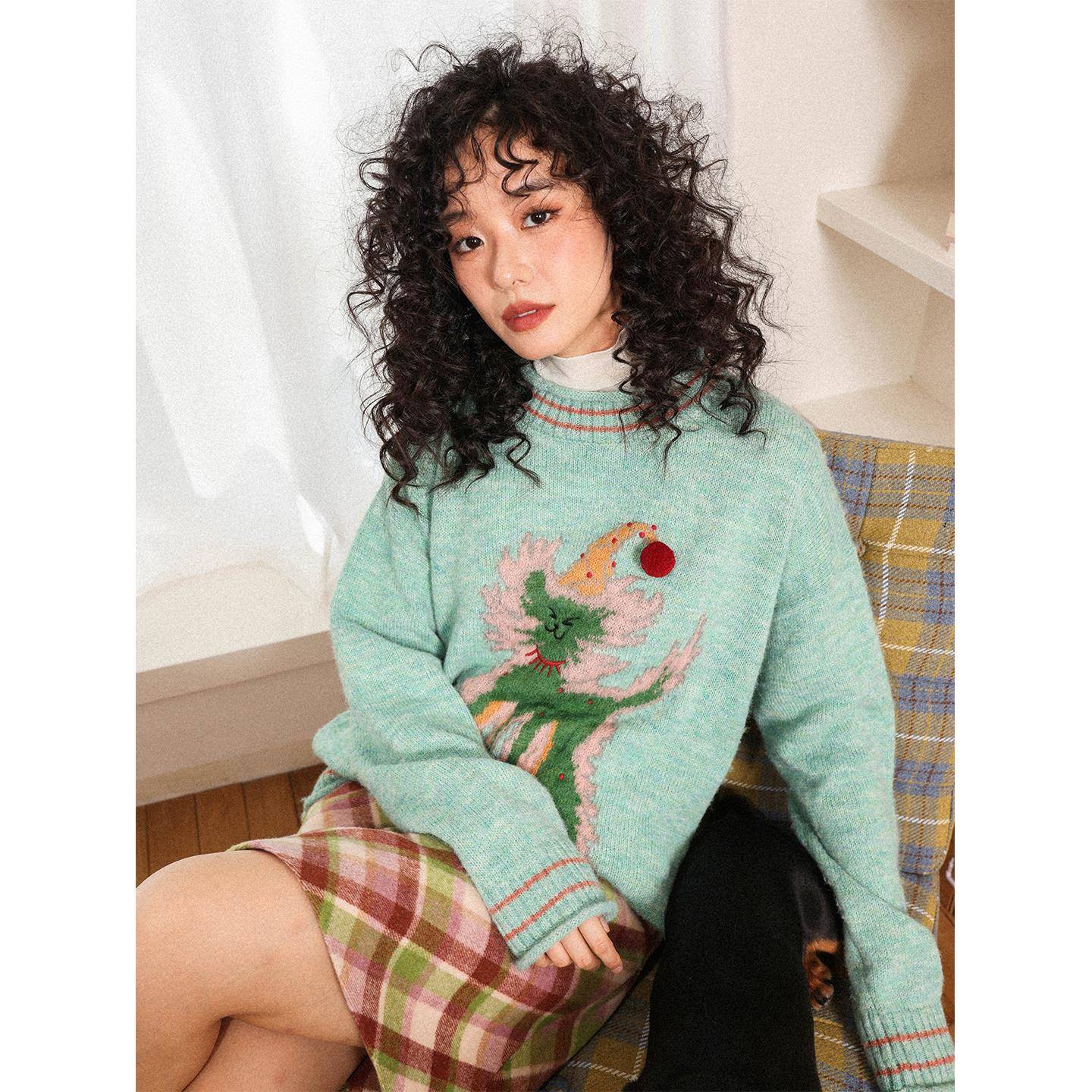 化学少女「风暴礼帽」慵懒高级羊毛马海毛针织套头毛衣毛衫女新款