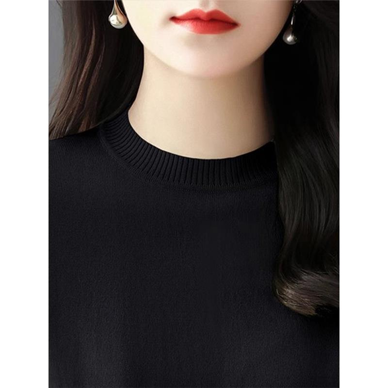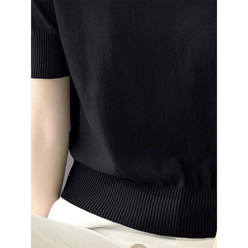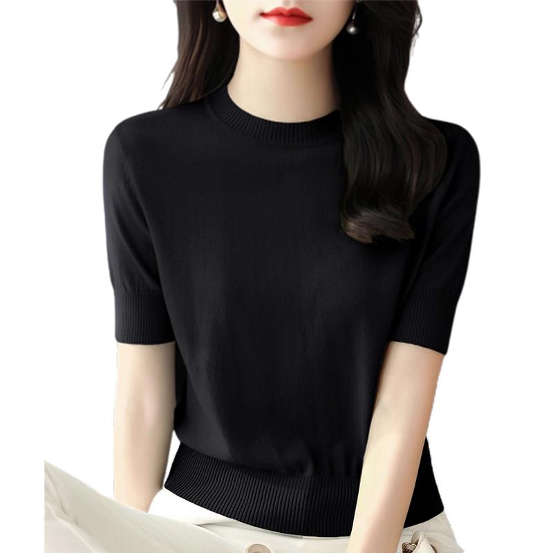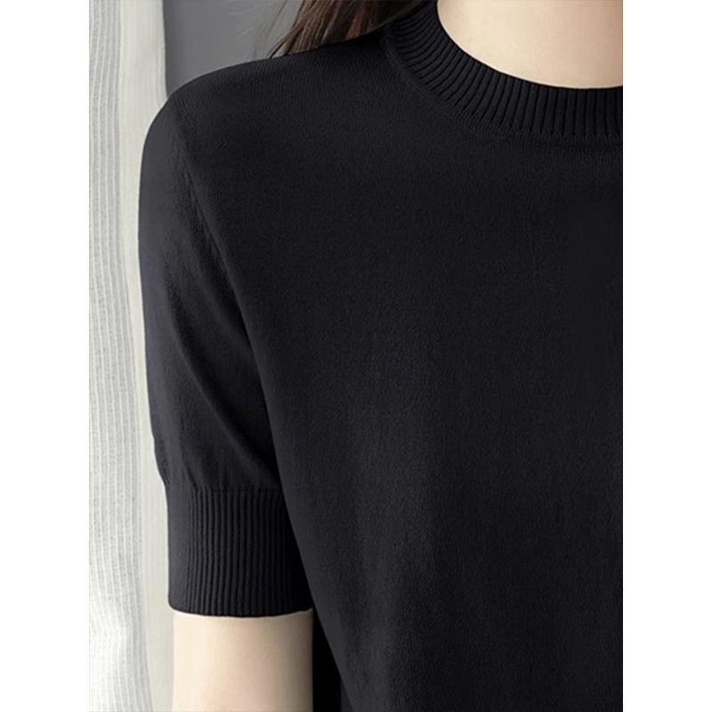 半高领冰丝针织衫短袖t恤女2025新款夏季显瘦打底衫早秋中袖上衣