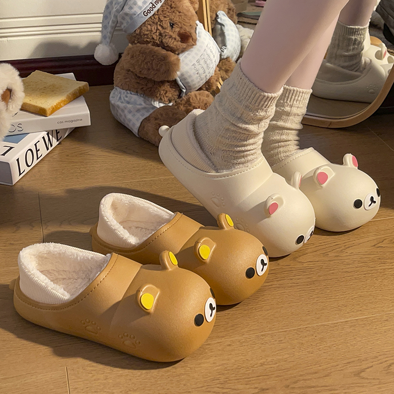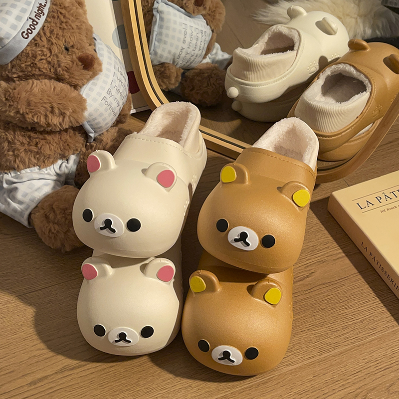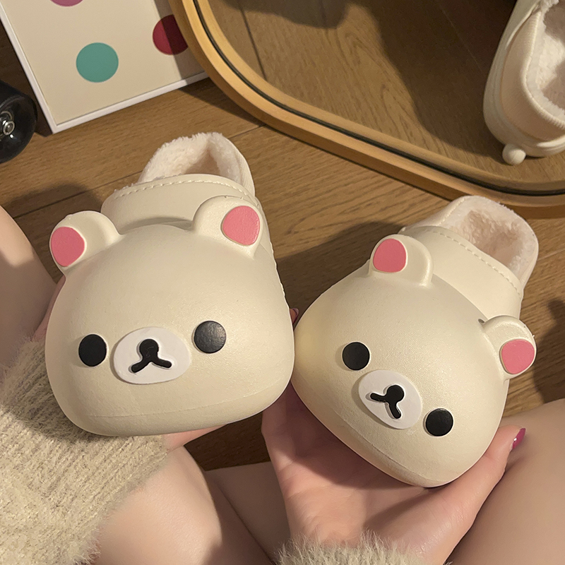 2025冬季加棉少女风轻松熊洞洞鞋防水防臭可爱女鞋外穿包头凉鞋女