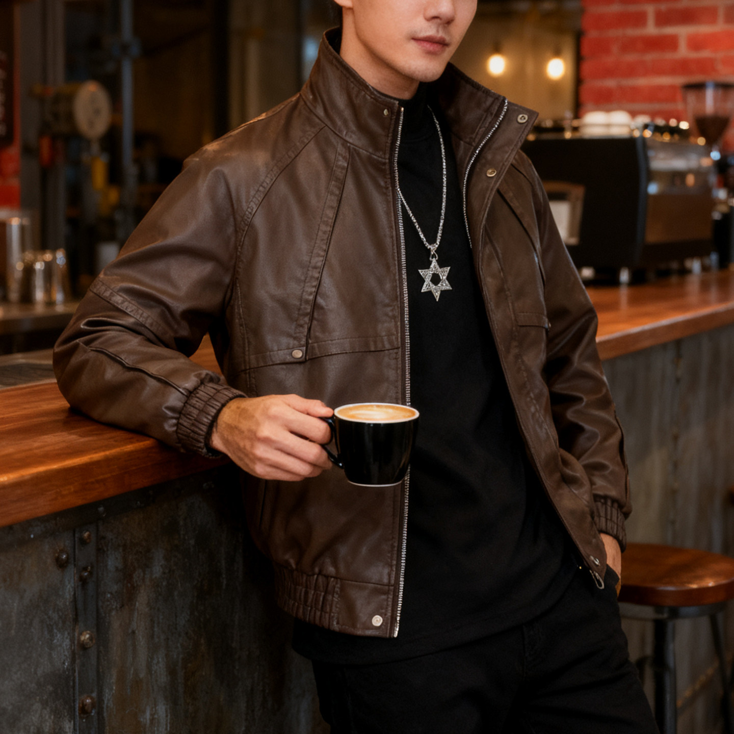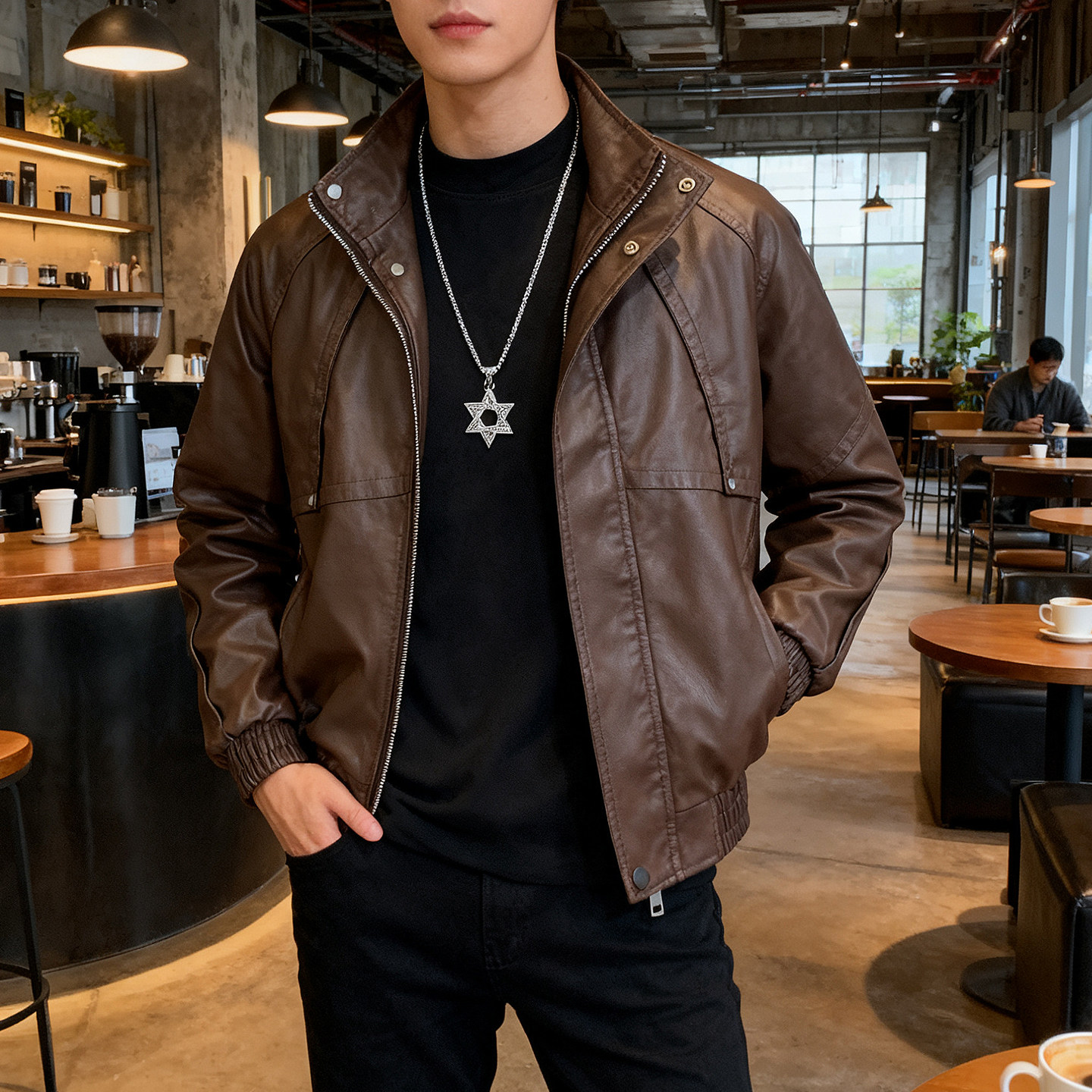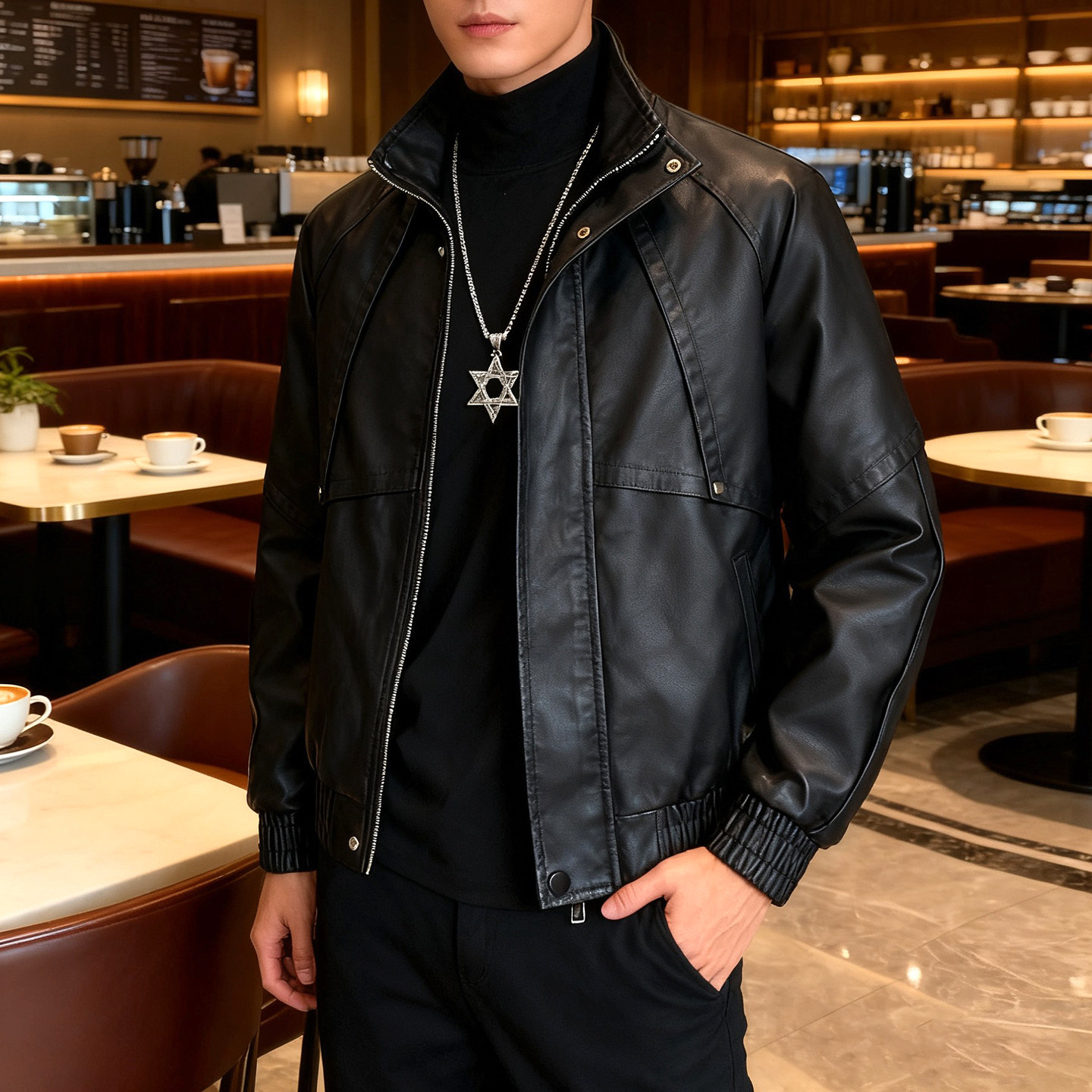 皮衣外套男士高级感美式复古新款男装机车修身短款时尚立领皮夹克
