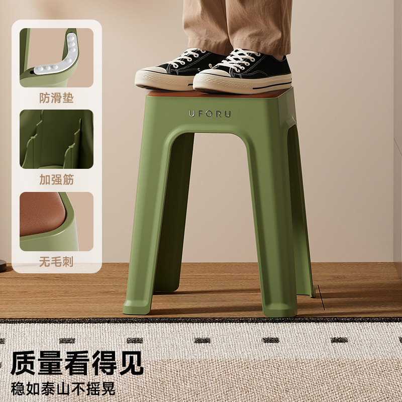 高脚凳家用客厅高级感皮革软包方凳加厚可叠放加固防滑垫塑料