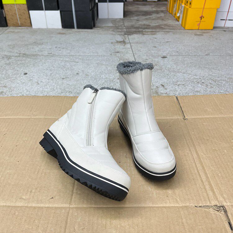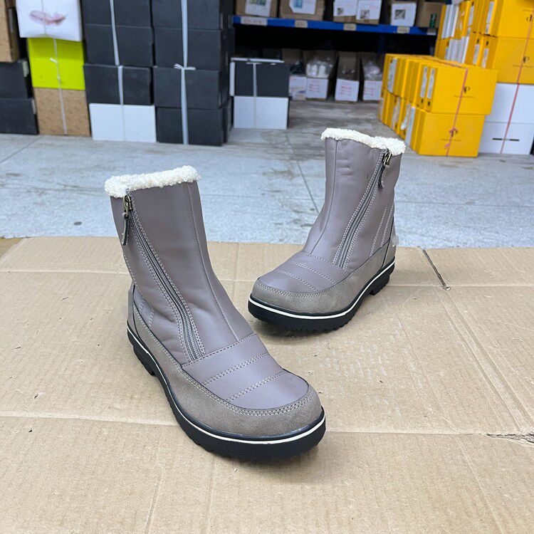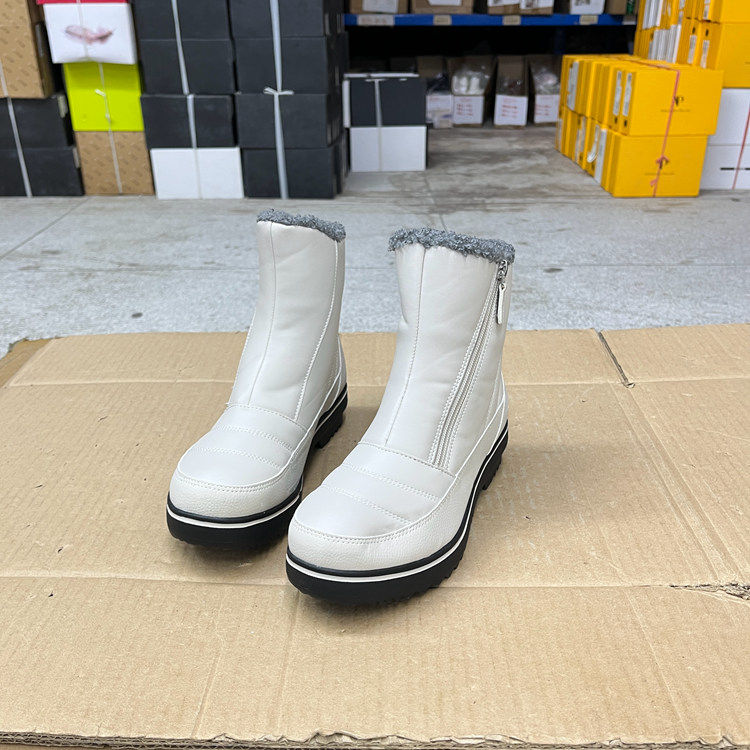 外贸原单女靴微瑕内里加毛保暖时尚新款圆头侧拉链时装毛毛短靴