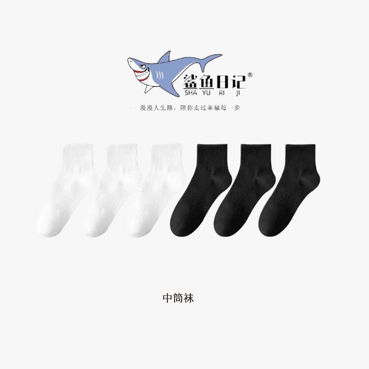 鲨鱼日记7A抗菌消臭袜男女同款35-45码可穿棉袜子(长中短四季)