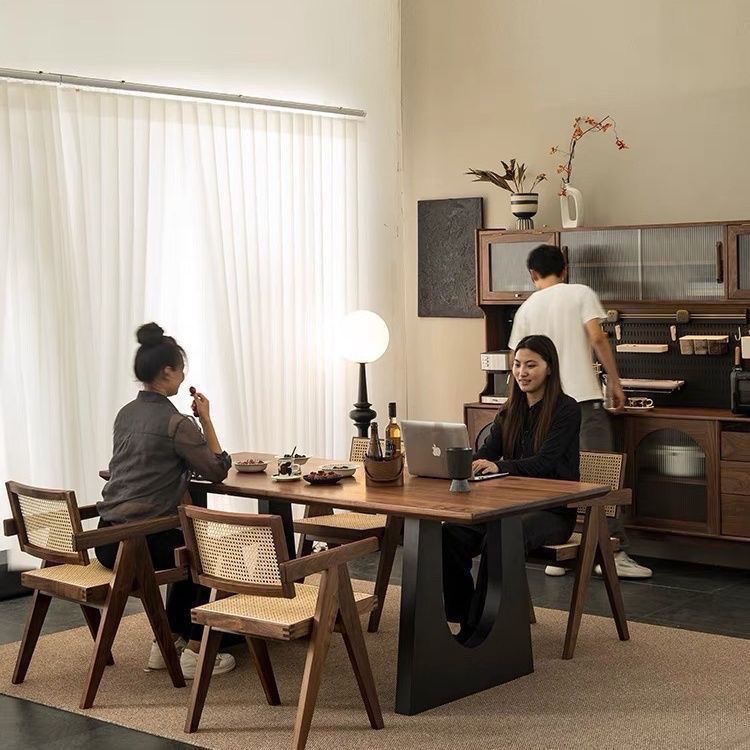 实木餐桌椅组合家用中古风吃饭桌子小户型现代简约轻奢长方形书桌