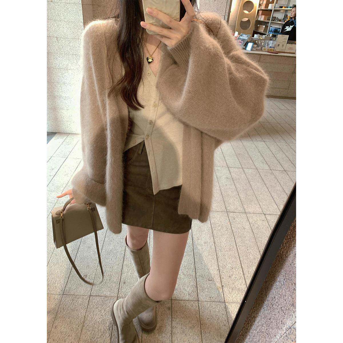 毛茸茸温柔软糯水貂绒毛衣女春秋冬宽松慵懒风高级感针织开衫外套