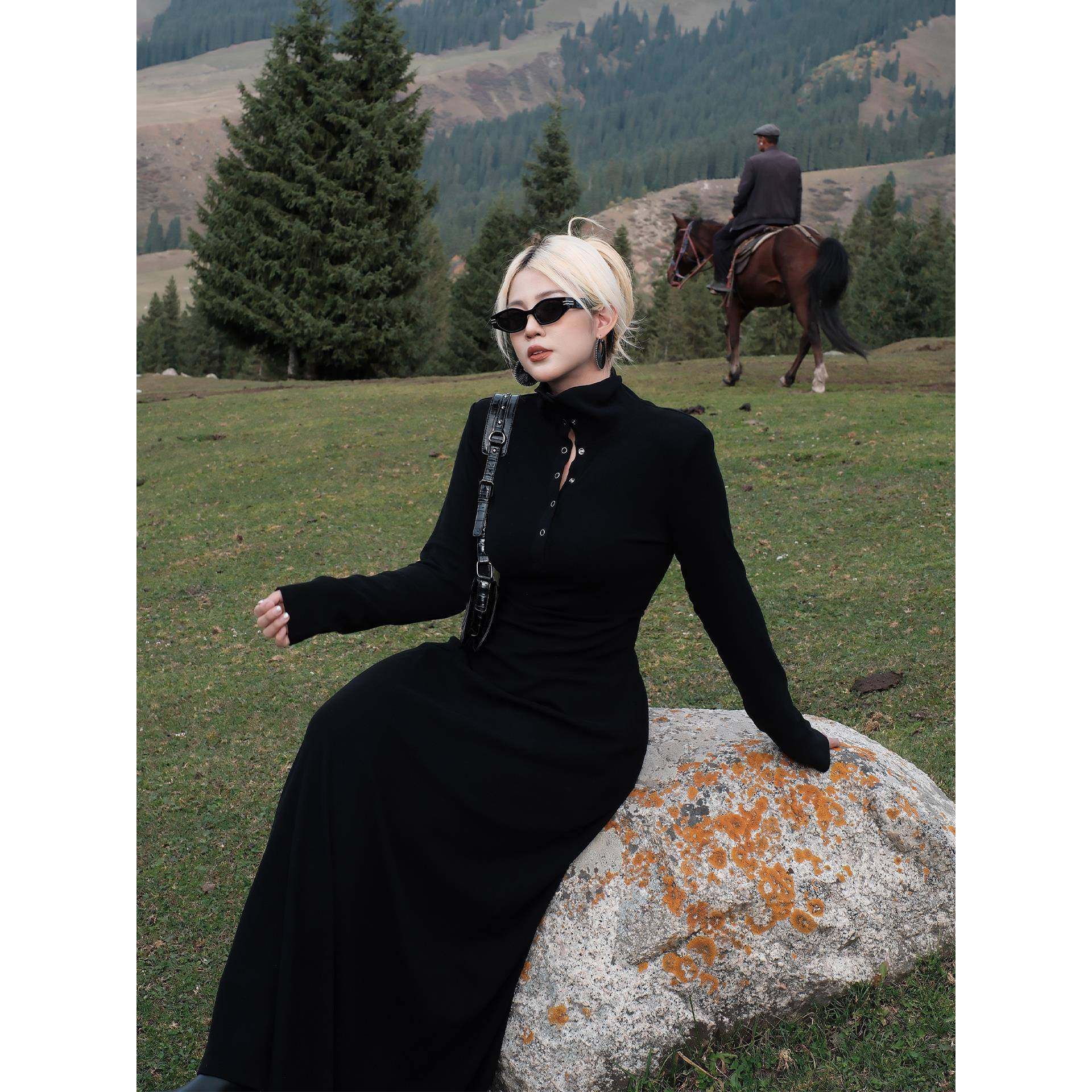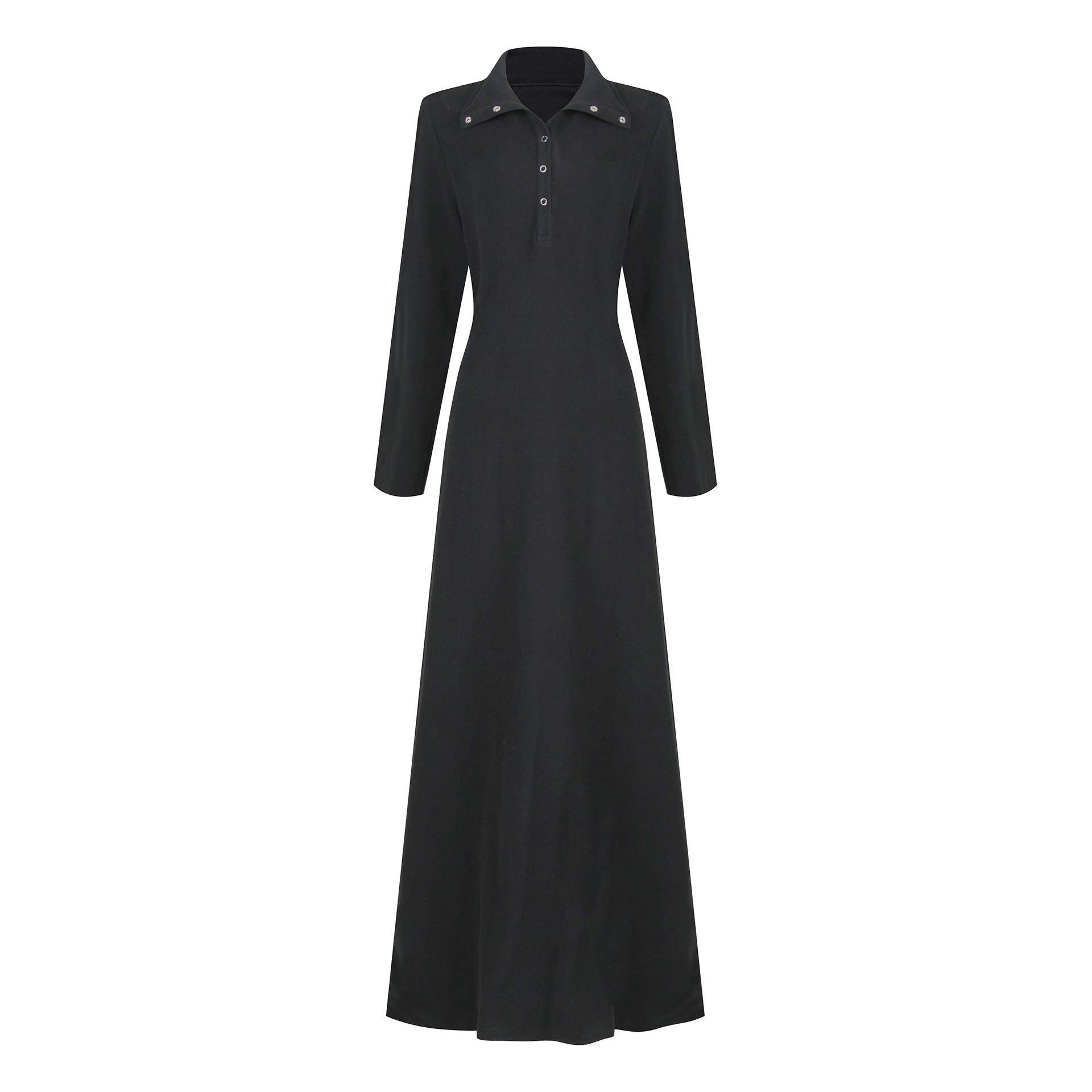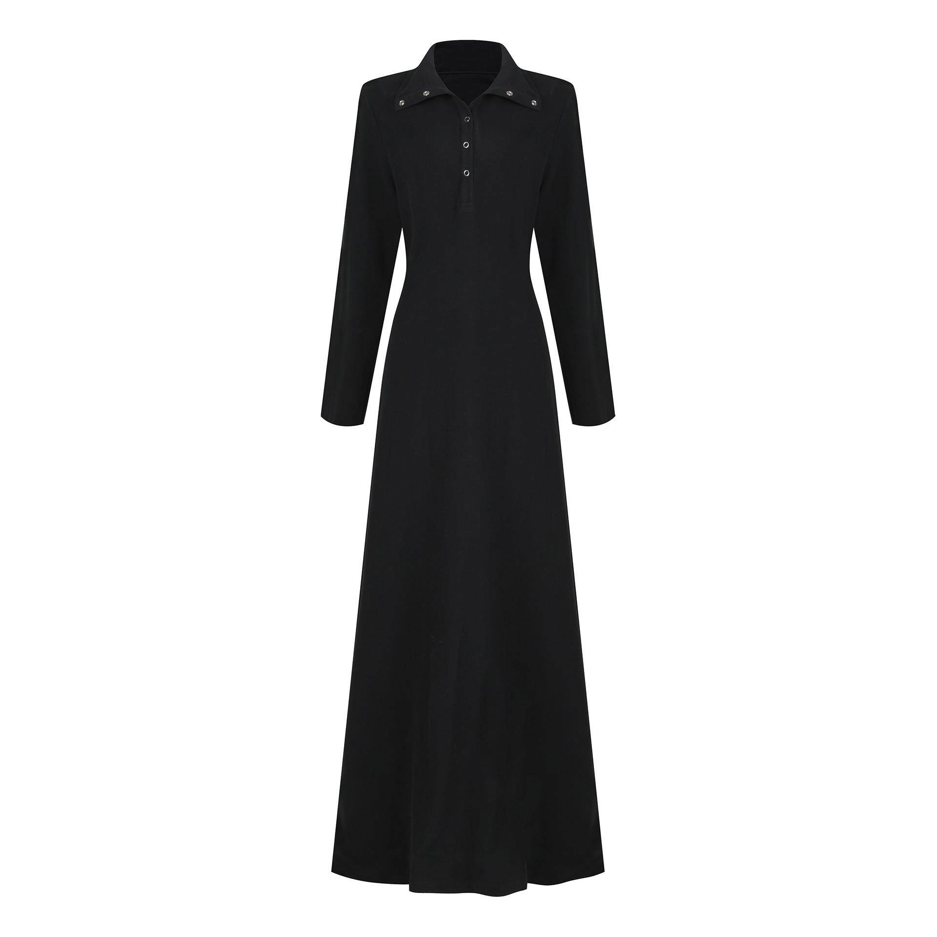 糯米子[匿名者]韩系纽扣黑色连衣裙秋冬季设计感显瘦长袖微胖裙子