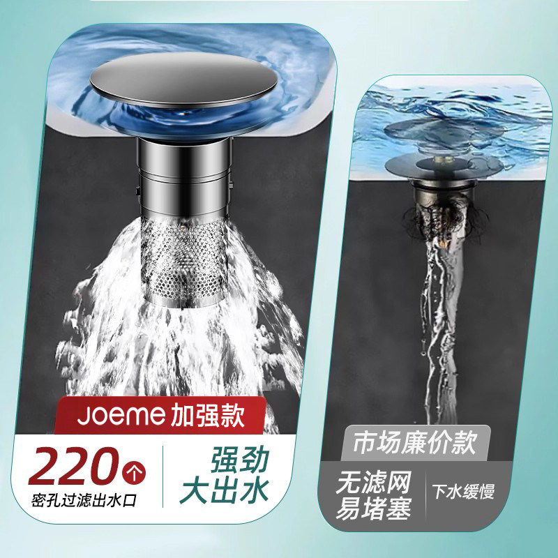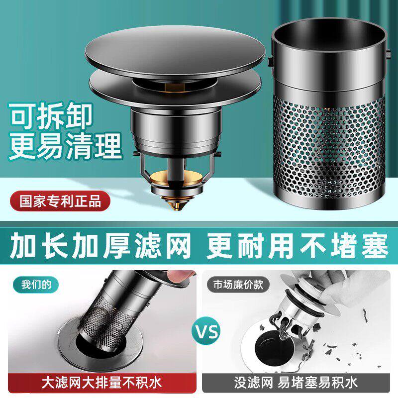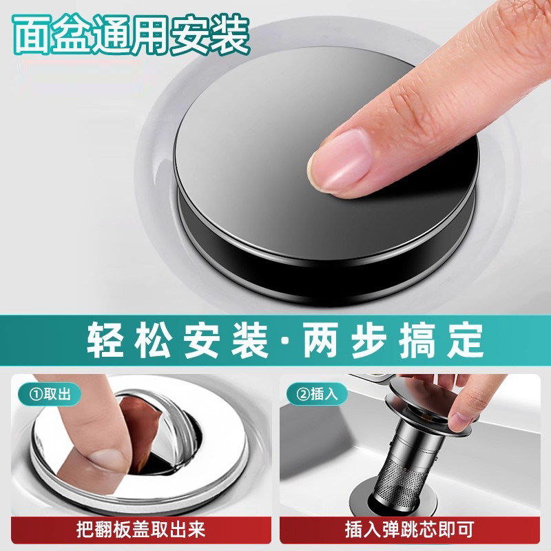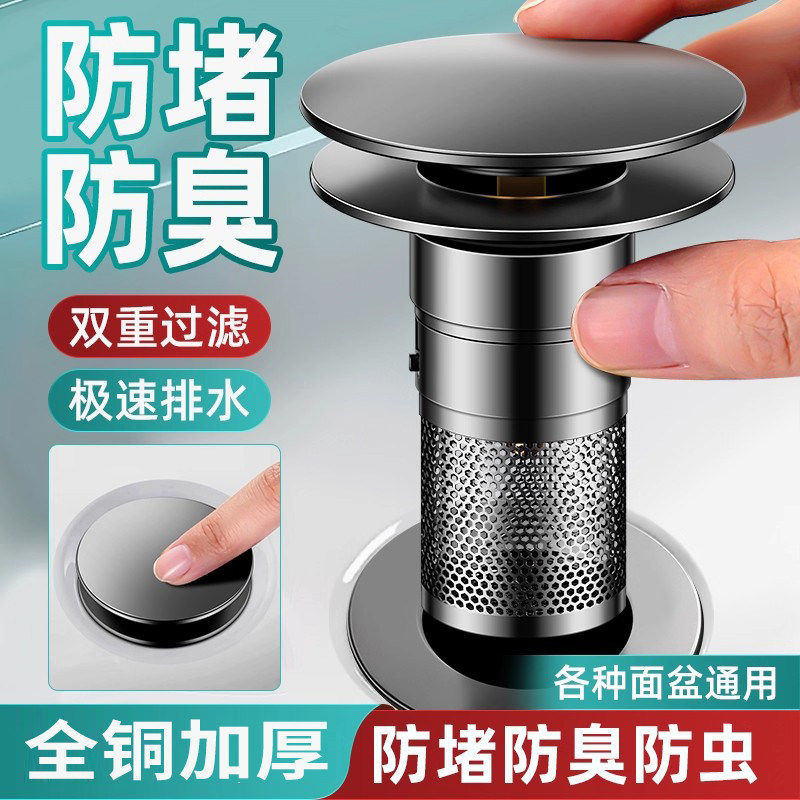 洗手盆全铜漏水塞过滤弹跳芯脸盆水池下水器防臭网面盆通用按压式