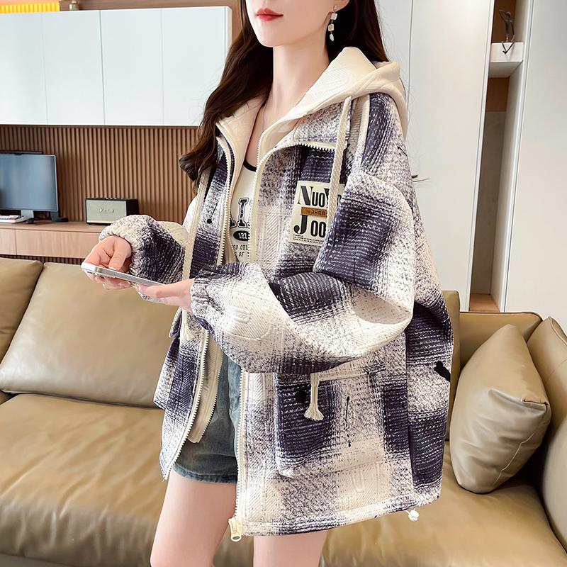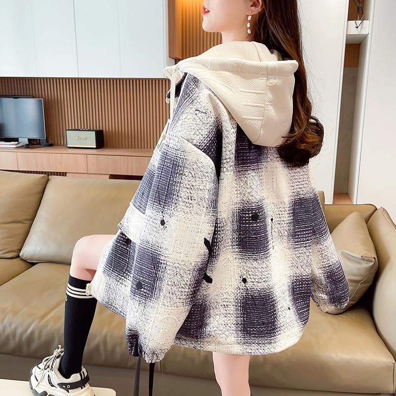 女大童假两件棒球服外套春秋季初中高中学生港风复古格子工装夹克