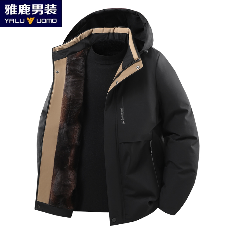 雅鹿男装冬季新款男士棉服石墨烯保暖黑金加绒棉服防水加厚外套