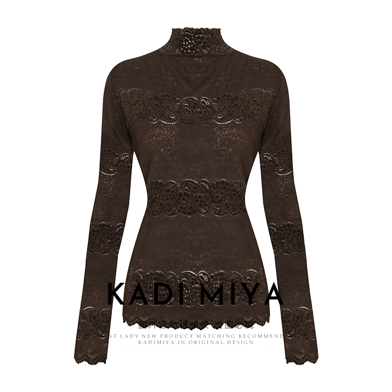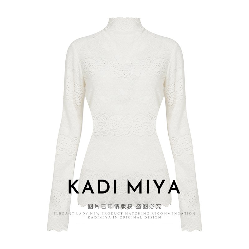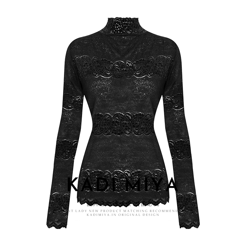 KADIMIYA百搭半高领蕾丝衫内搭上衣复古高级感长袖打底衫