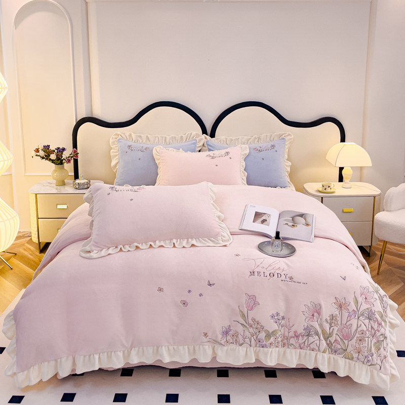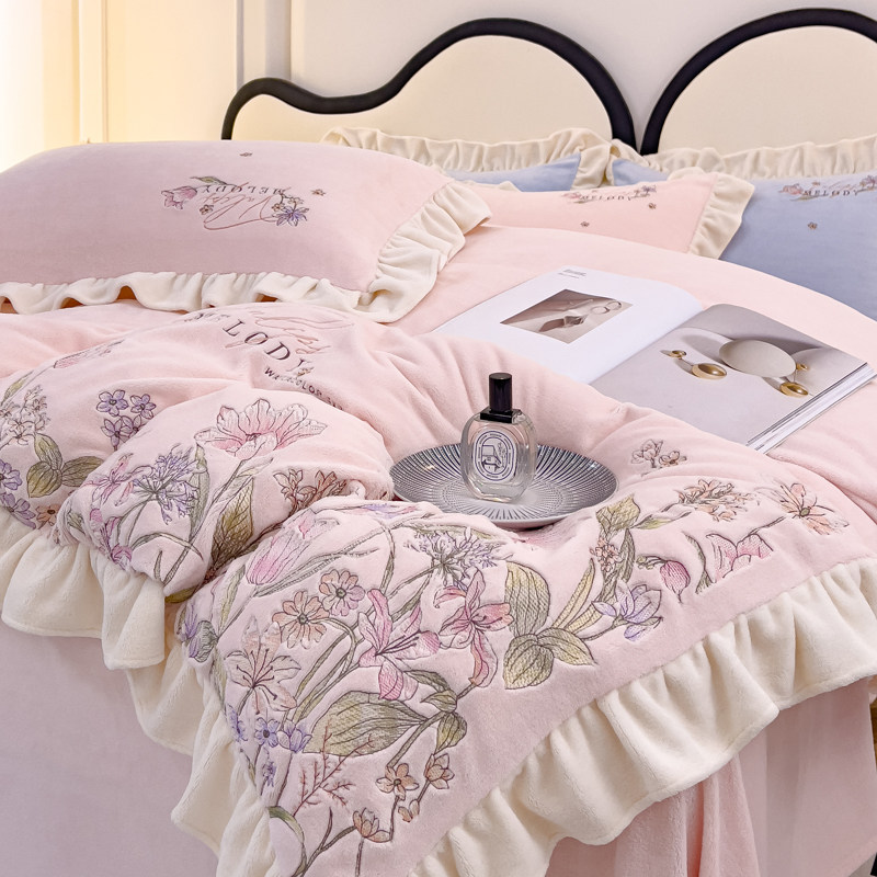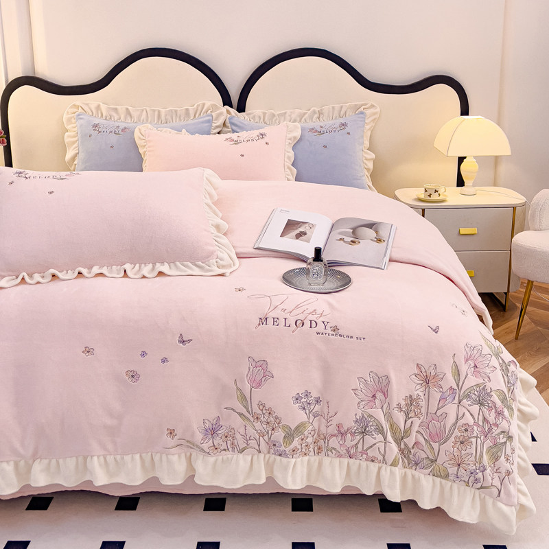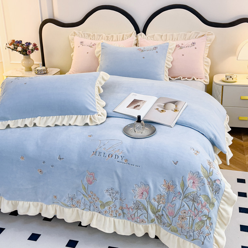 新款高档230克克全消光重工刺绣小清新宿舍三件套牛奶绒四件套