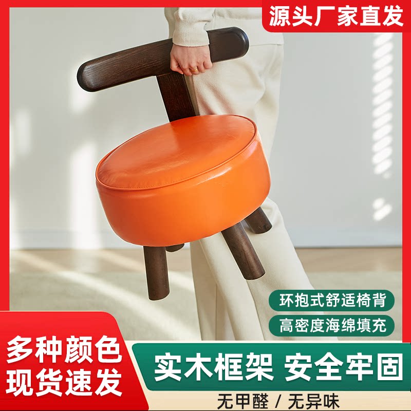 实木矮凳凳子家用靠背360度旋转沙发凳软包换鞋凳小椅子板凳家用
