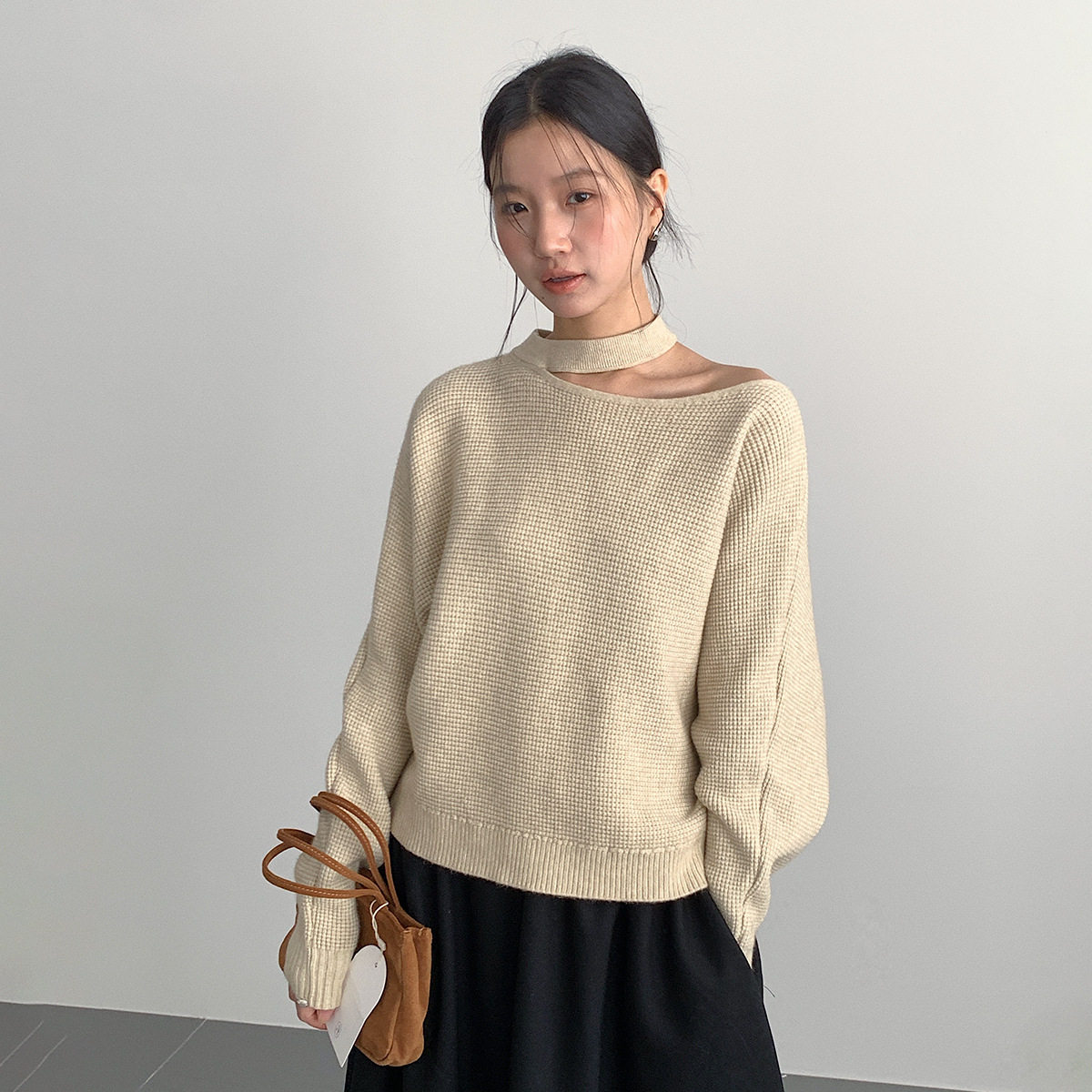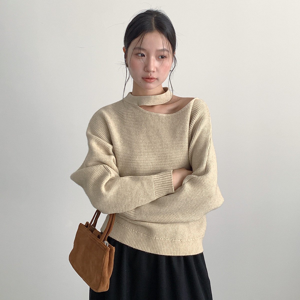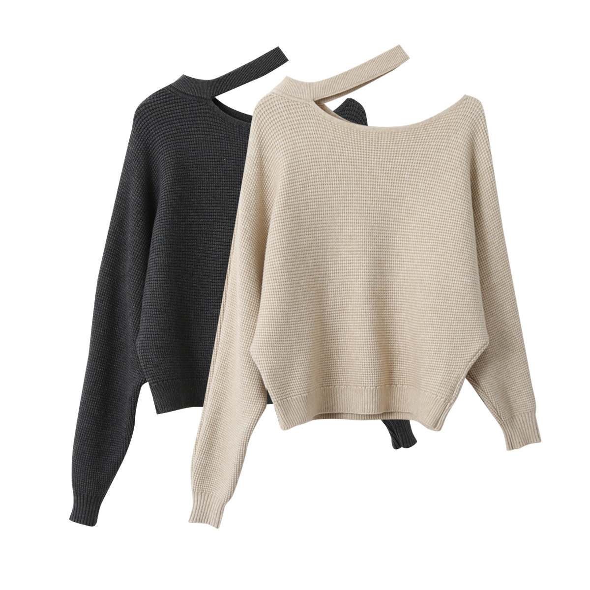 【欧凡】韩系挂脖镂空露肩洋气毛衣女装显瘦长袖针织衫上衣11029