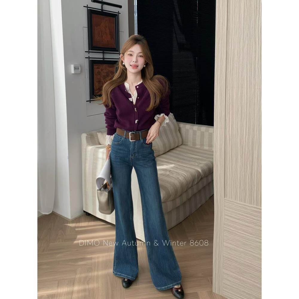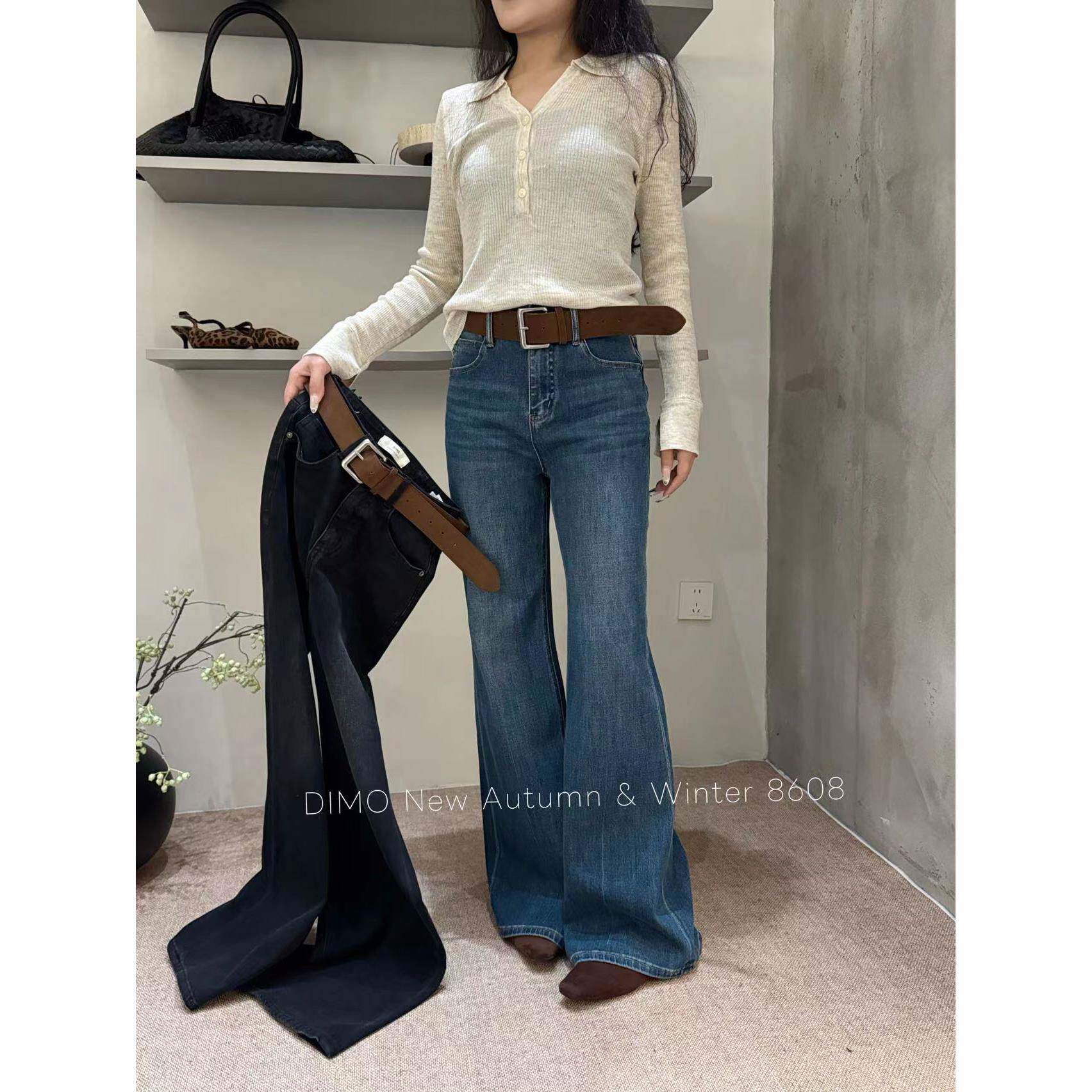 DIMO8608高腰四面弹牛仔喇叭长裤女2025秋冬韩版宽松不贴腿筒喇裤