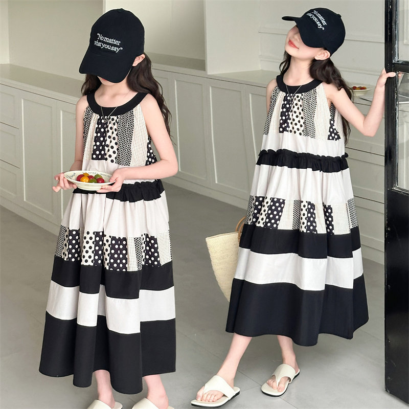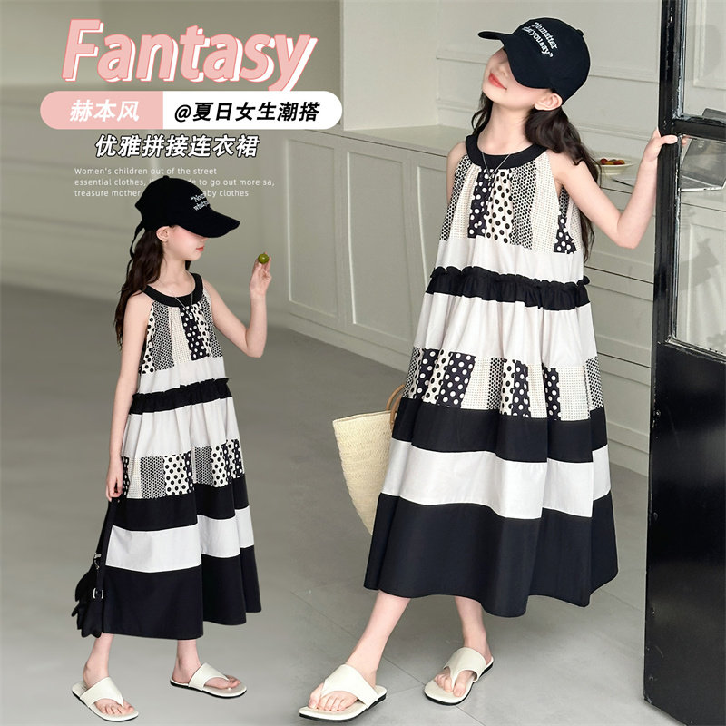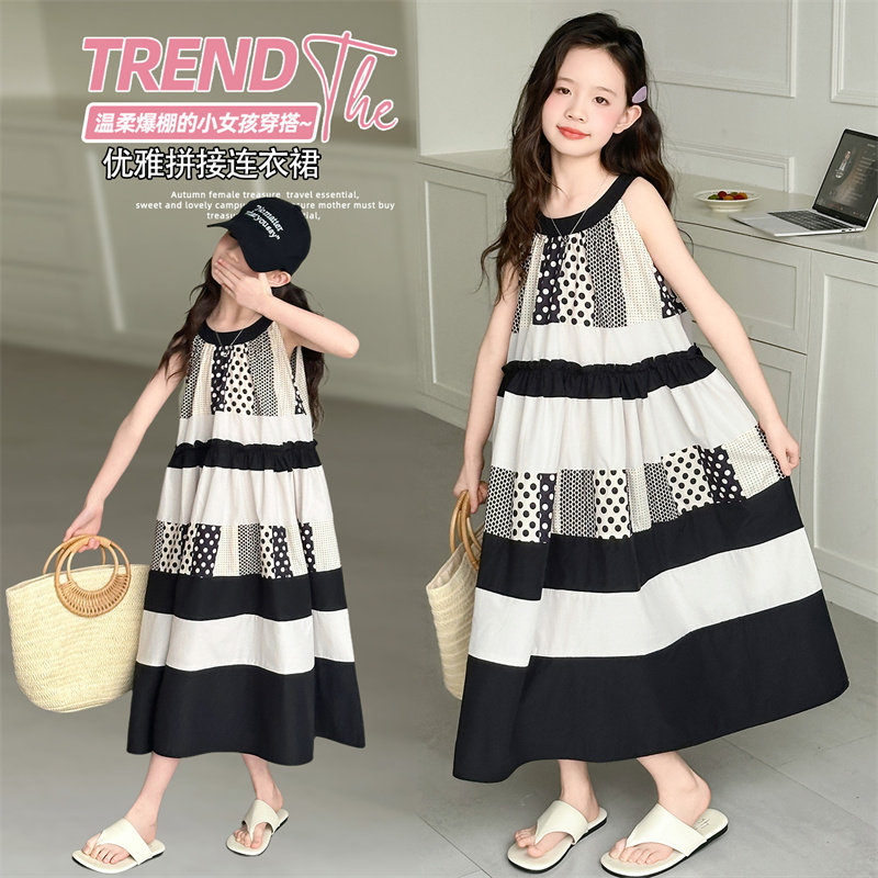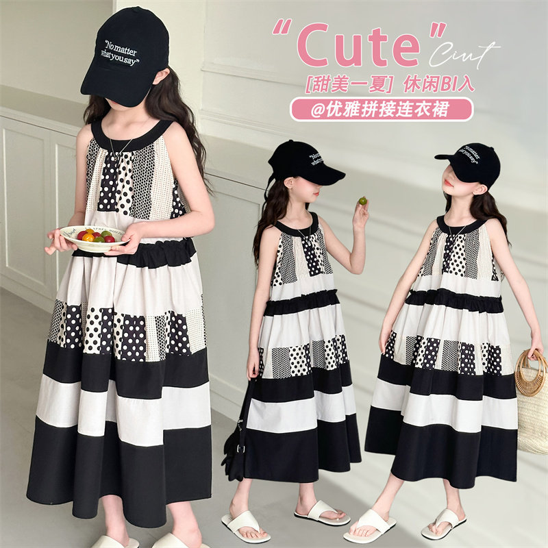 甜美无袖拼接连衣裙女夏季中长裙小个子洋气公主风裙子
