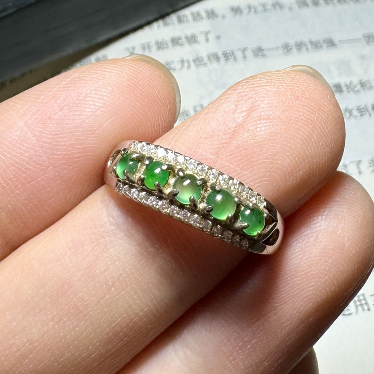 瑜瑾缅甸天然A货翡翠冰种冰阳绿戒指
