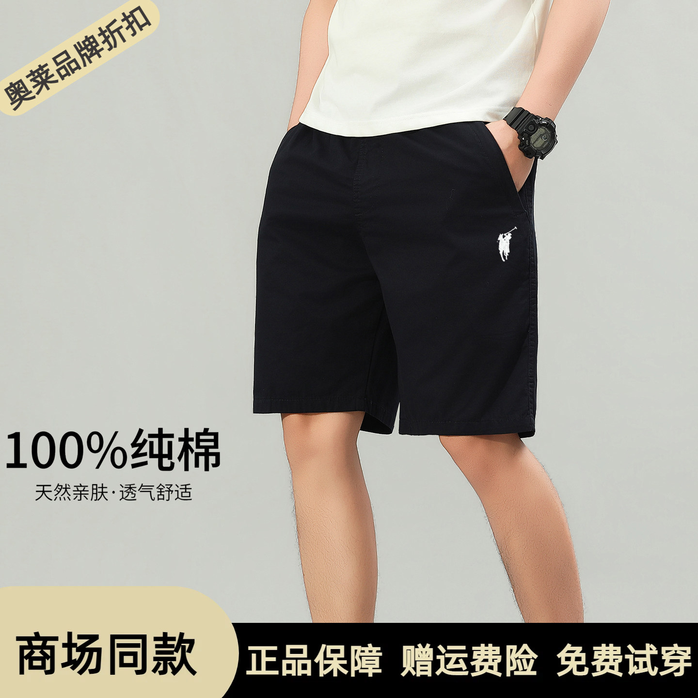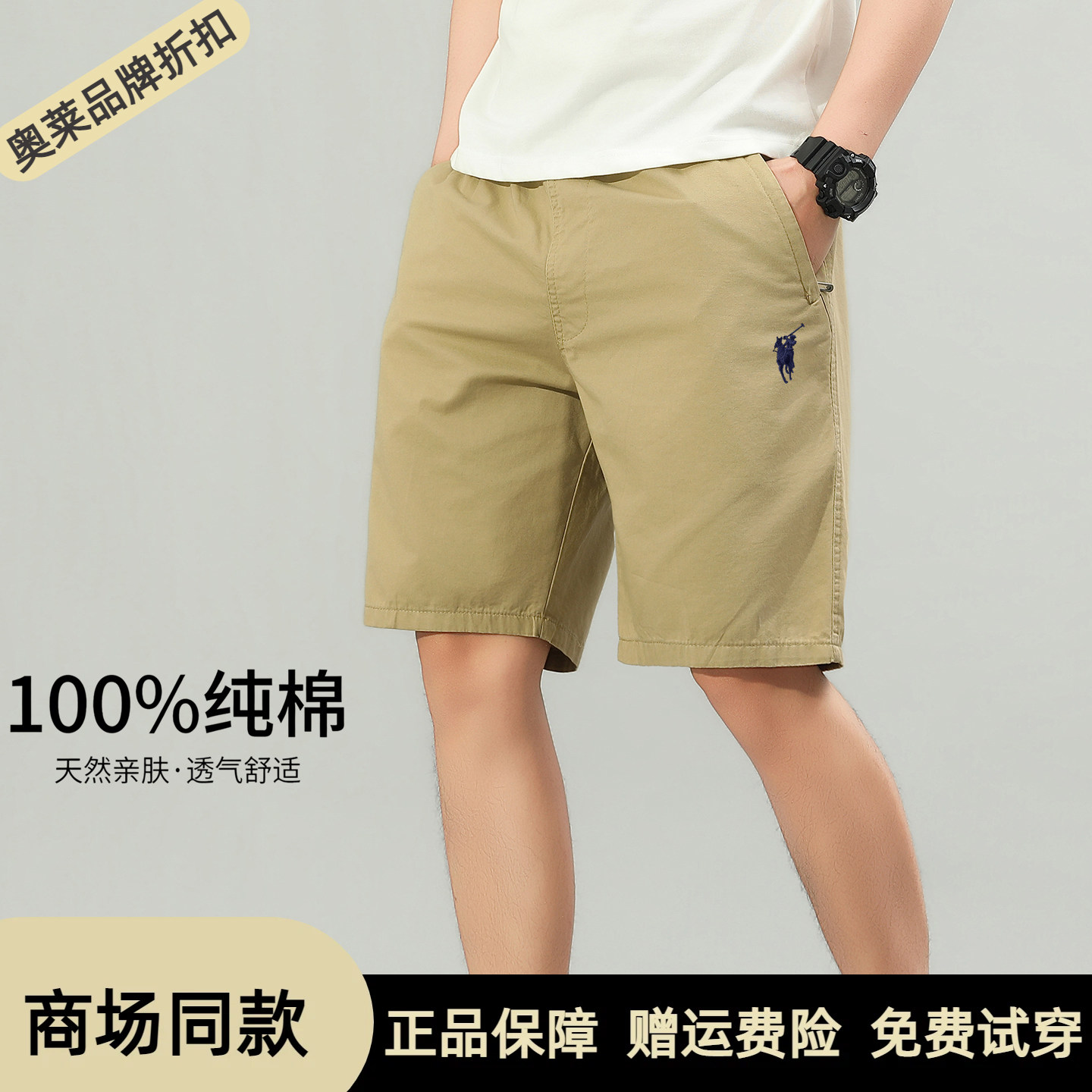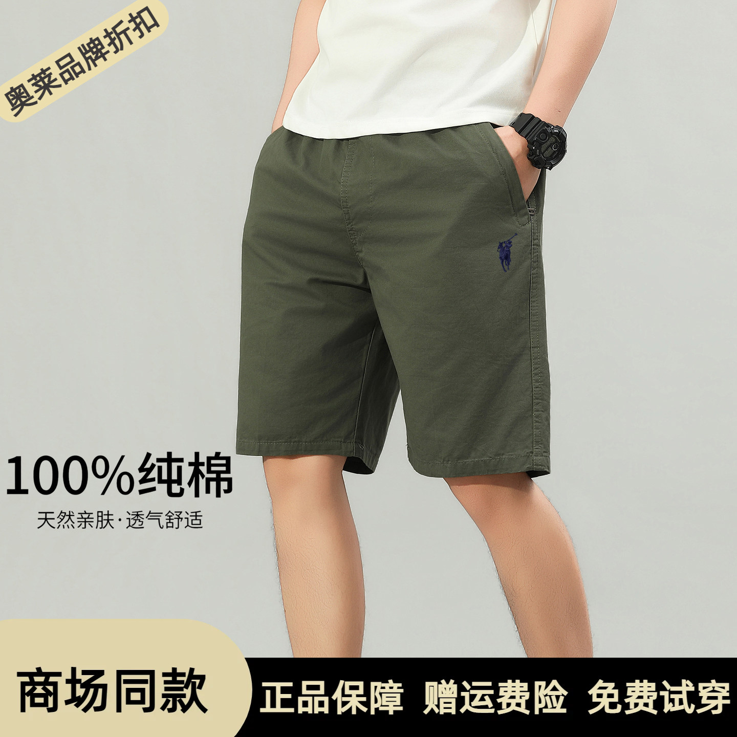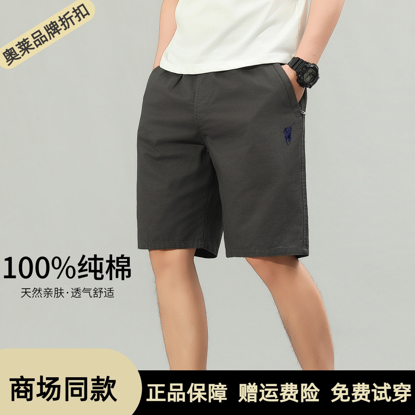 保罗男士休闲短裤纯棉【奥莱品牌折扣】拉链侧松紧腰夏季五分裤