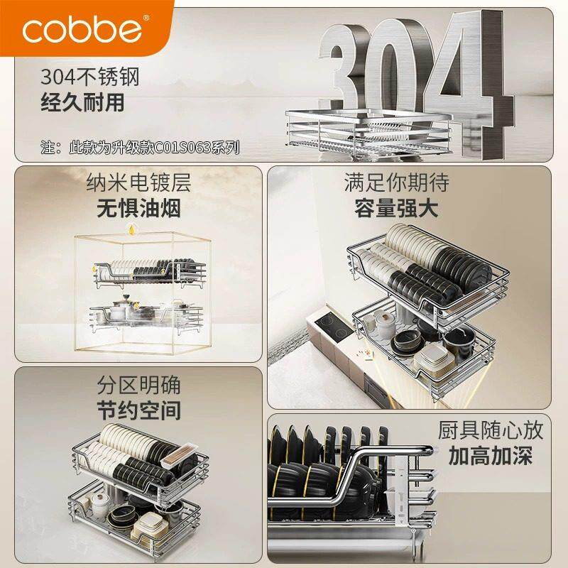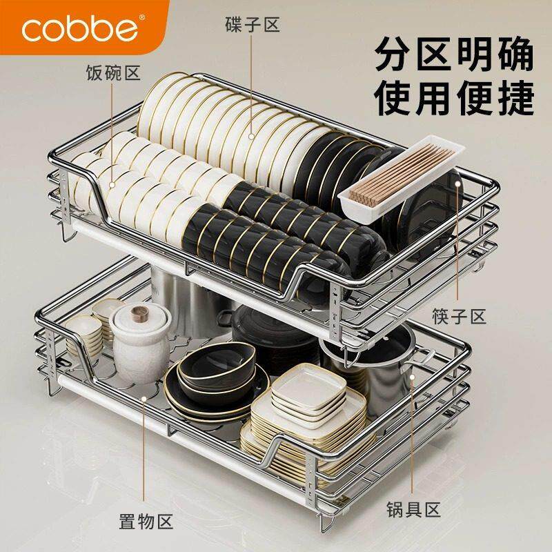 卡贝拉篮厨房整体橱柜碗篮304不锈钢双层抽屉式收纳碗碟架柜?具车