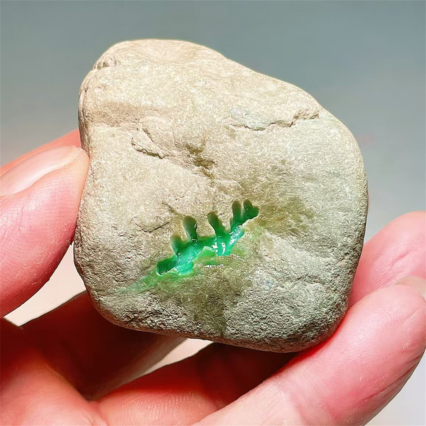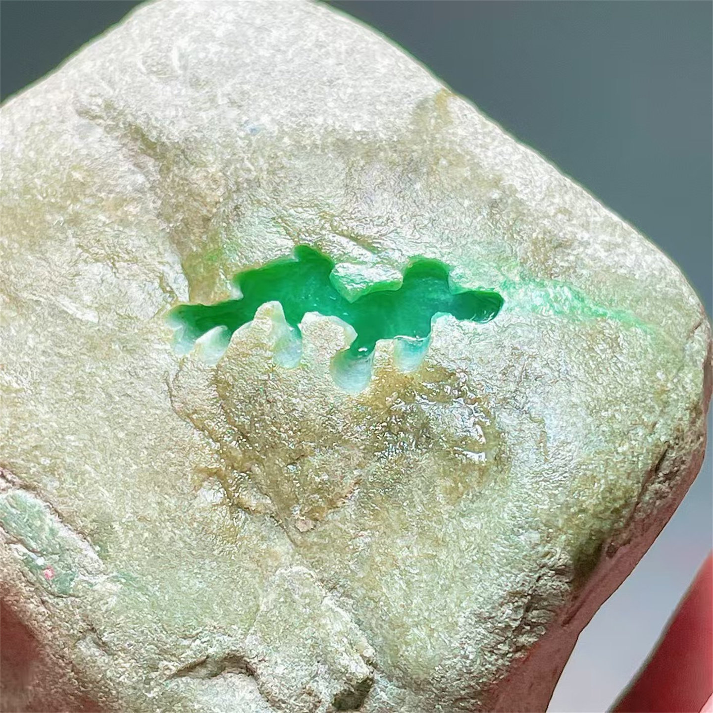 T15378 精品缅甸天然翡翠原石老坑后江场口色料戒面料 重195克