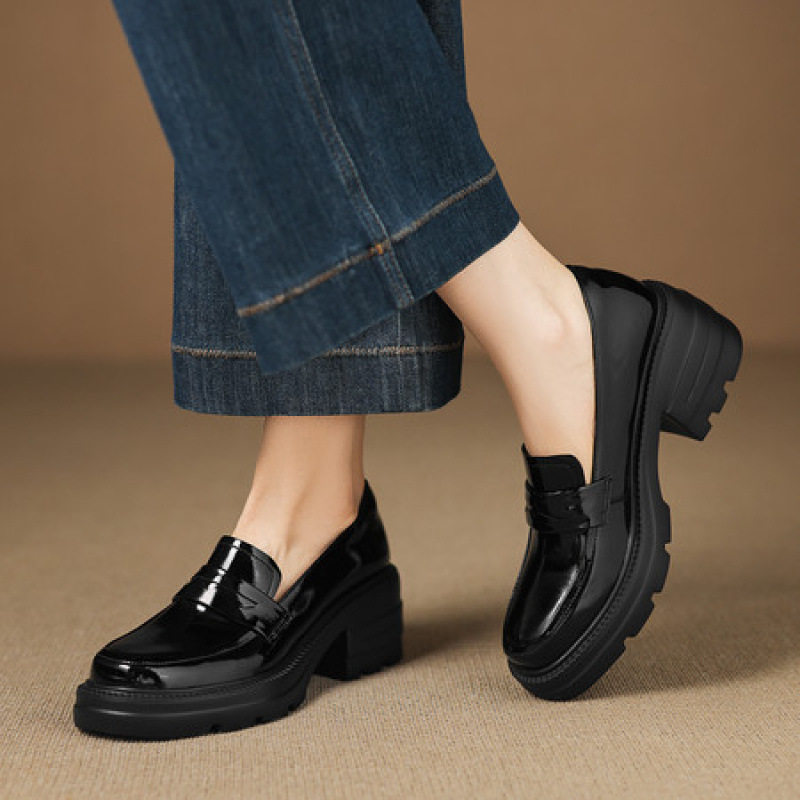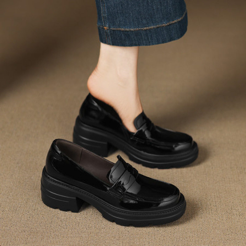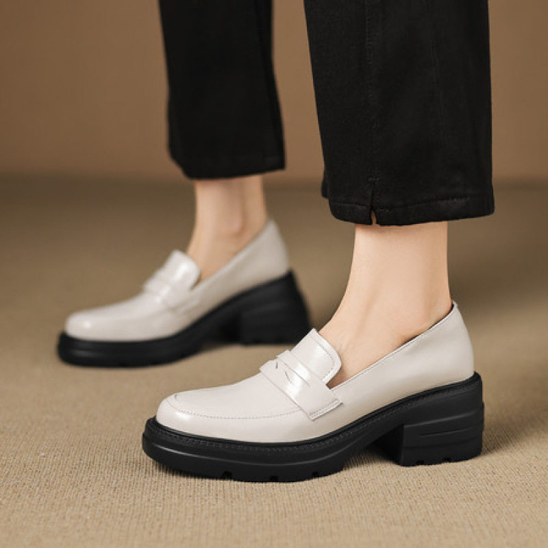 牛皮单鞋春秋新款厚底乐福鞋时尚接简约复古百搭通勤工作休闲女鞋