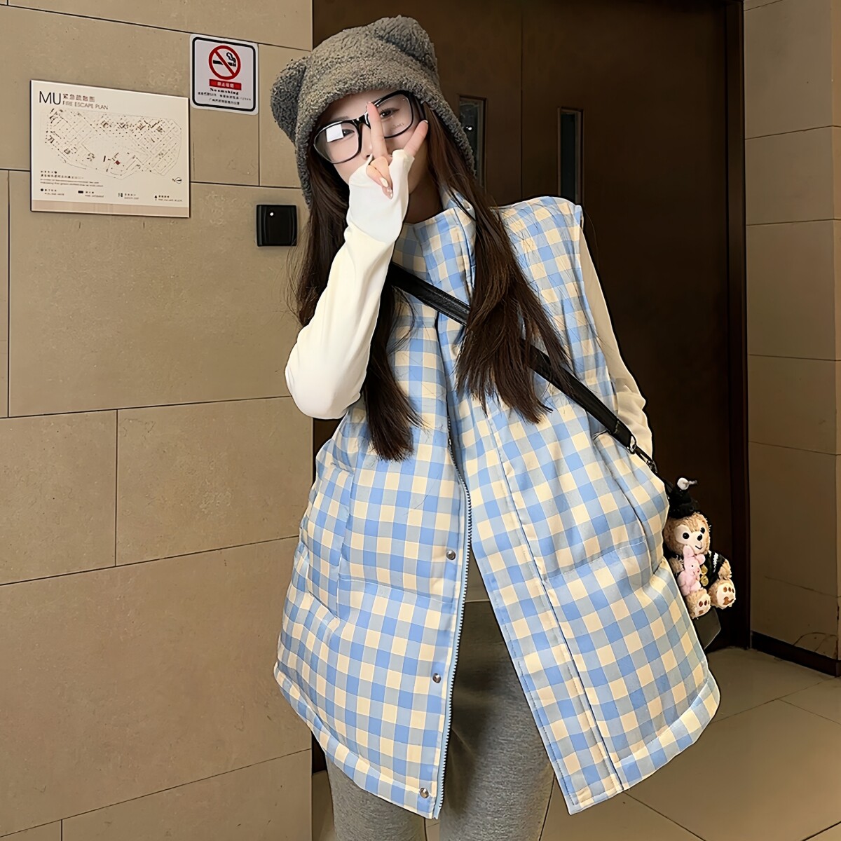 超好看减龄 胖mm大码格子立领棉服马甲女秋冬爆款设计时尚外套603
