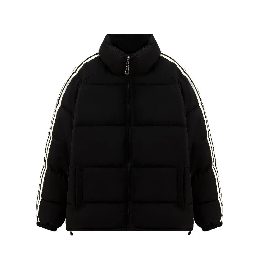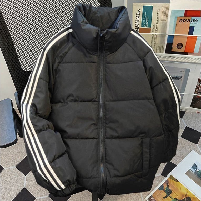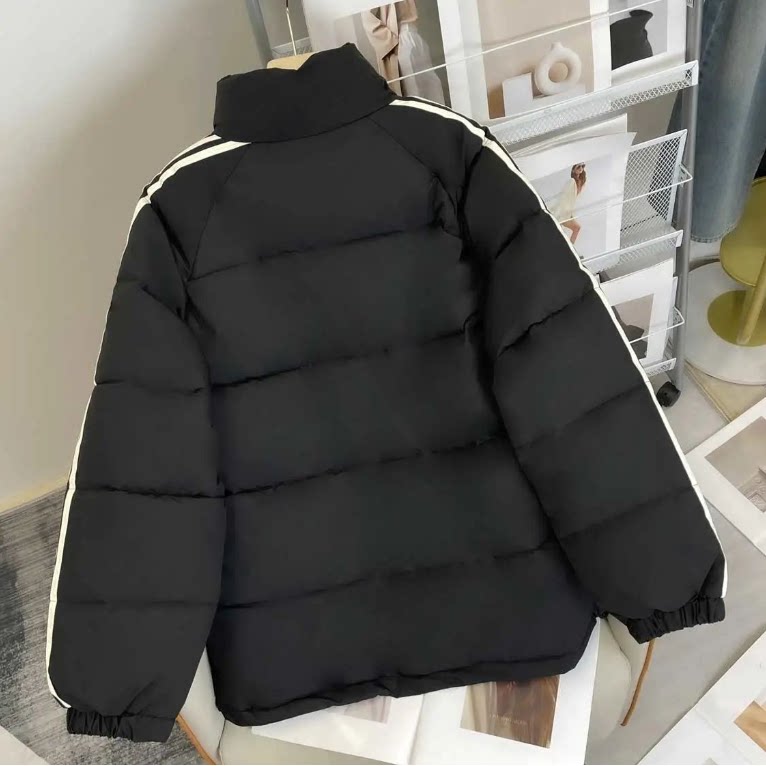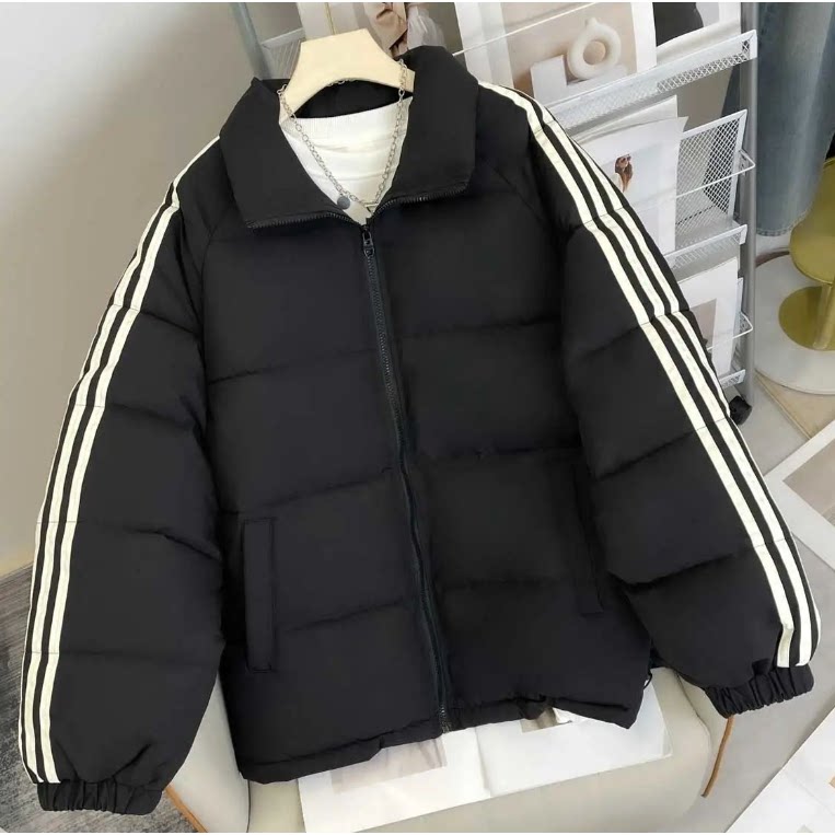 加大码胖妹妹羽绒棉服女秋冬新款三条杠拼接立领百搭保暖加厚外套