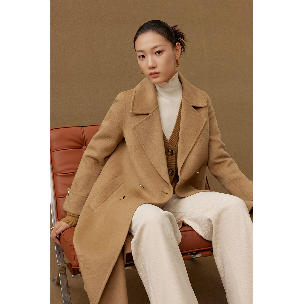 【廖廖粉丝专属】【商场同款】曼德诗全羊毛大衣字母压印双面毛