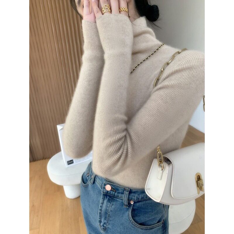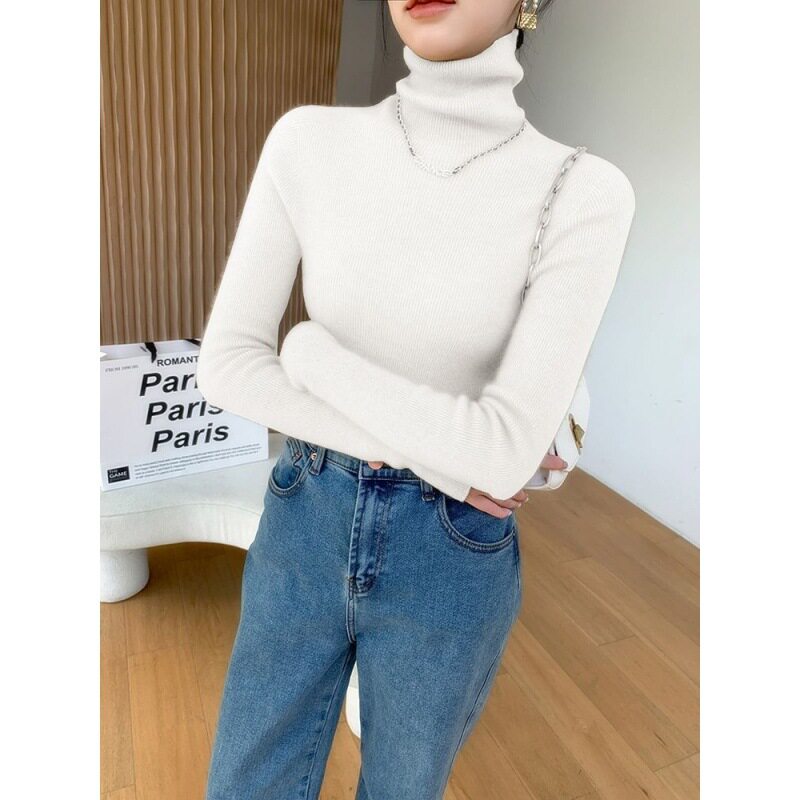 轻奢高档毛衫秋冬新款百搭针织衫堆堆领高领打底毛衣修身加厚绒衫