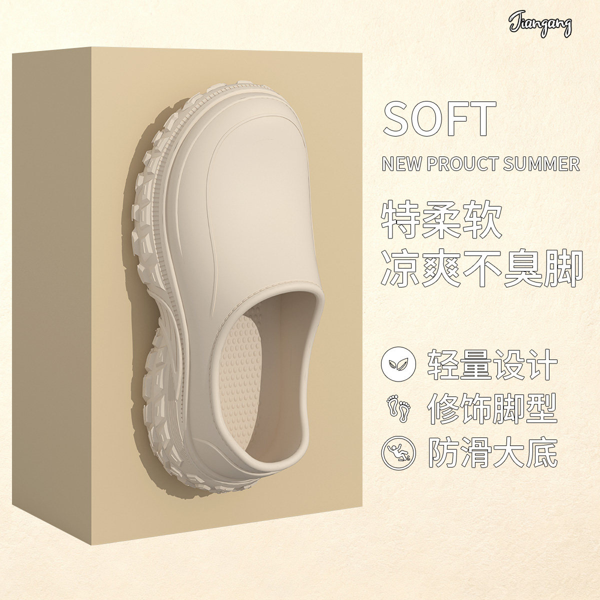 防水厨房工作鞋男凉鞋沙滩春秋防滑耐磨软底包头拖鞋男踩屎感拖鞋