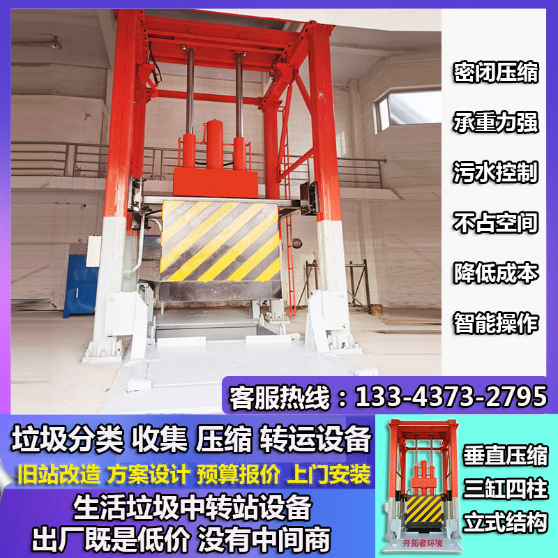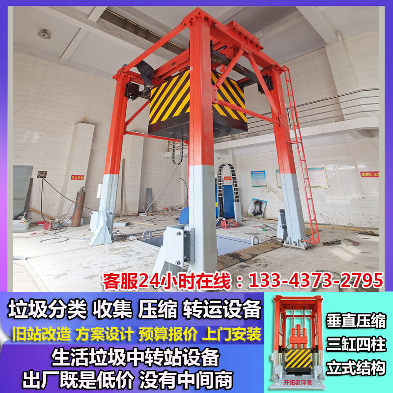 环卫中小型垃圾中转系统 80吨三缸立式垂直式垃圾压缩站设备