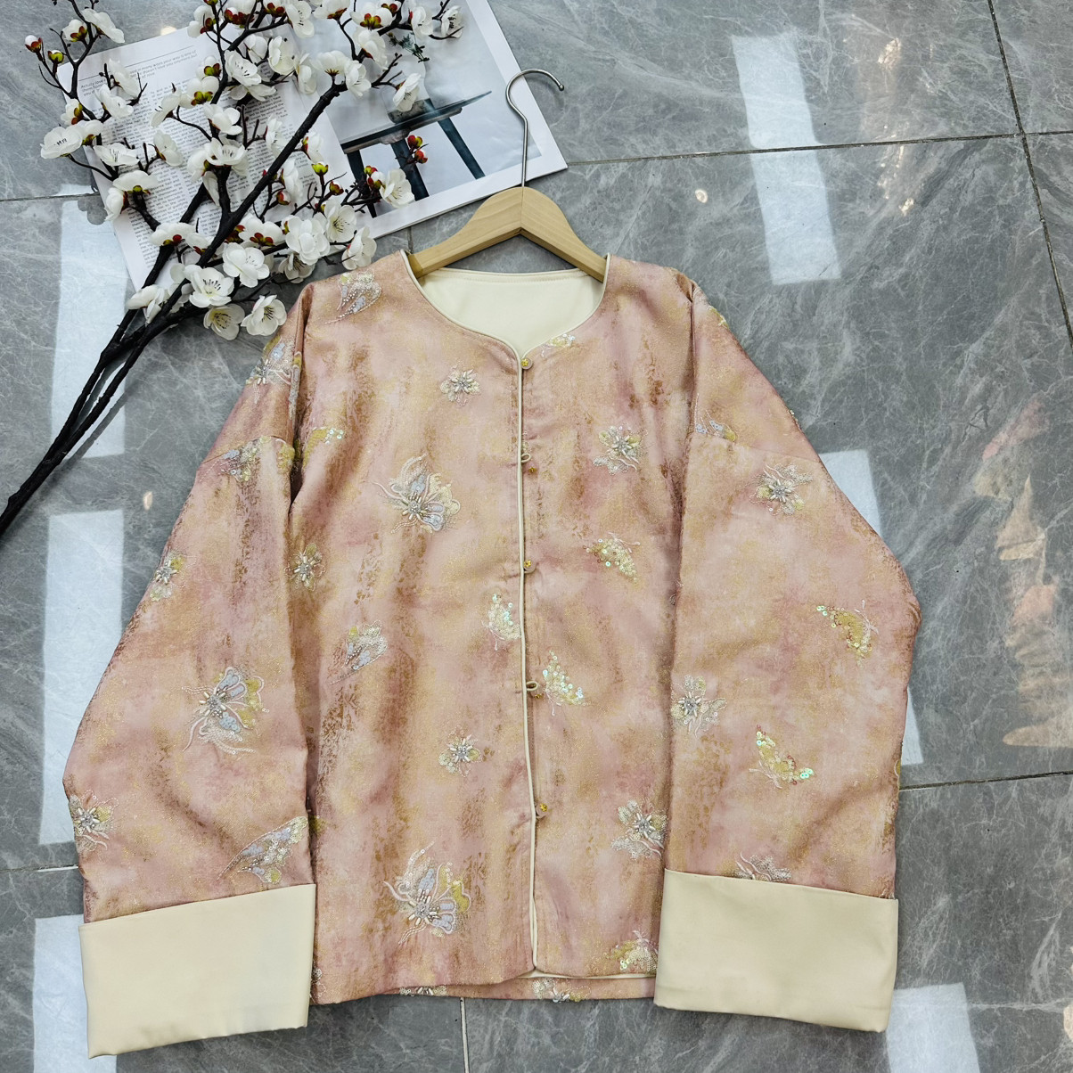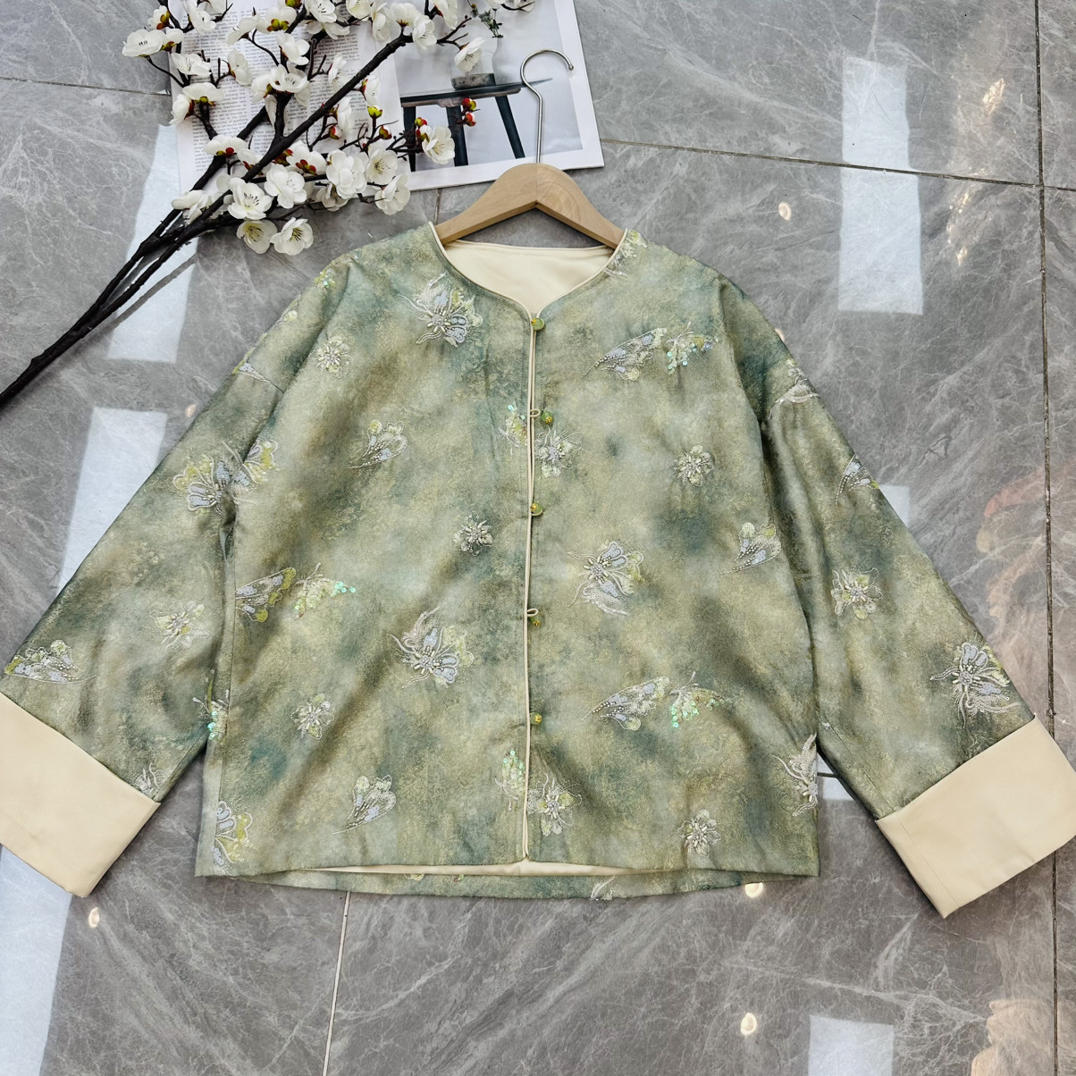 26年早春!人丝提花重工钉珠国风短外套