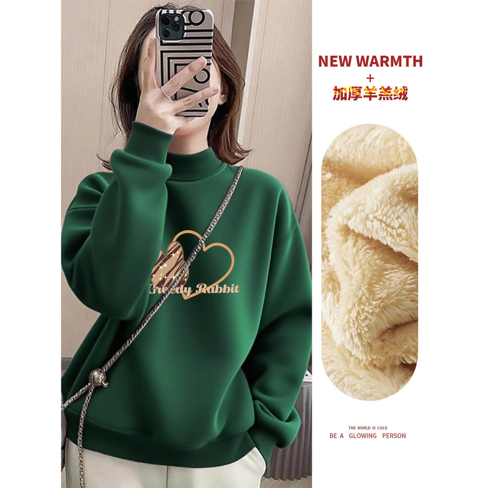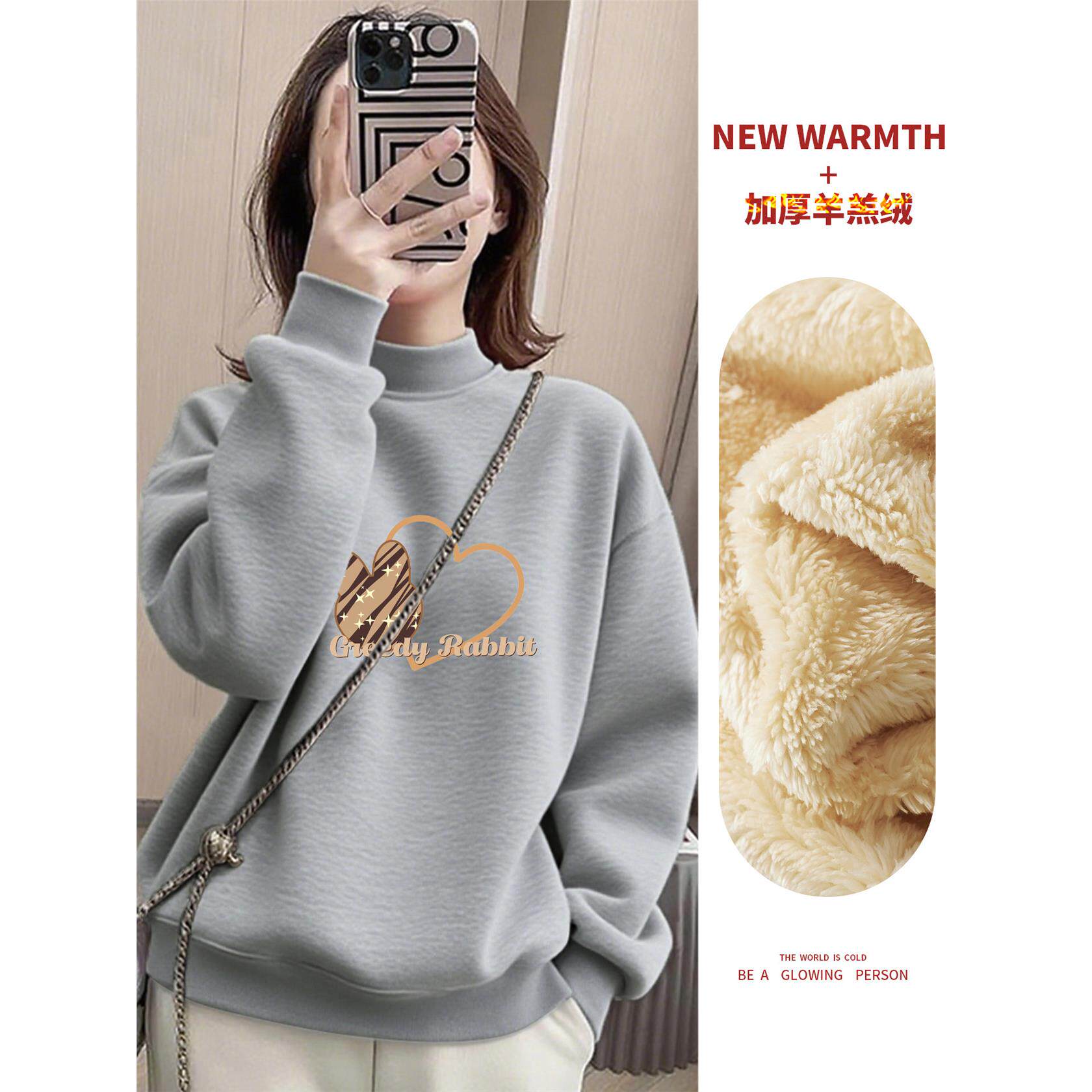 冬季新款半高领加绒卫衣女套头爆款减龄时尚加厚彷羊羔绒保暖上衣