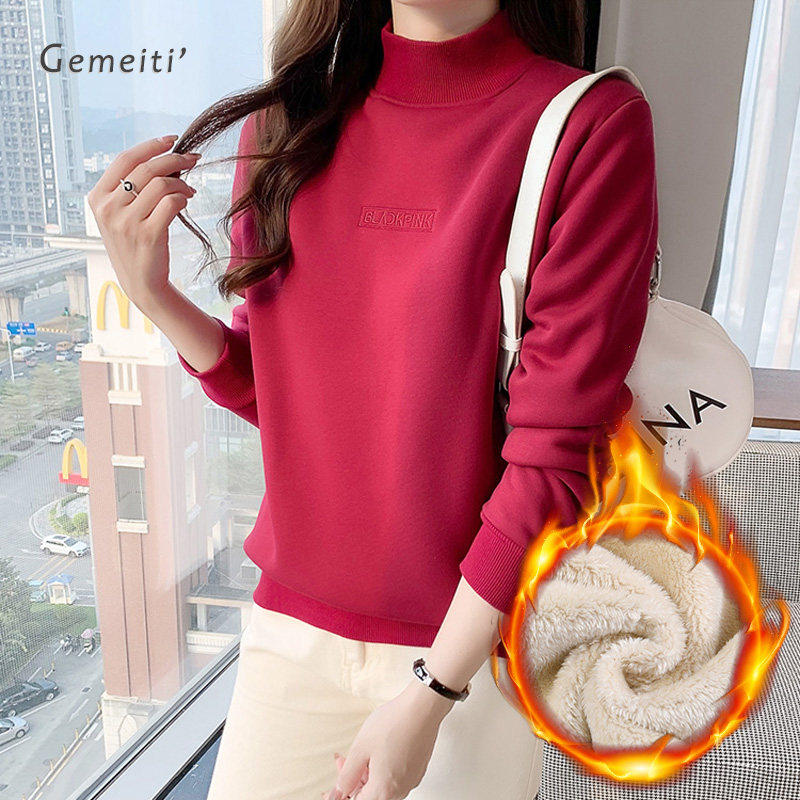 半高领正肩加绒套头休闲 上衣女加厚爆款2025冬季新款羊羔绒内搭