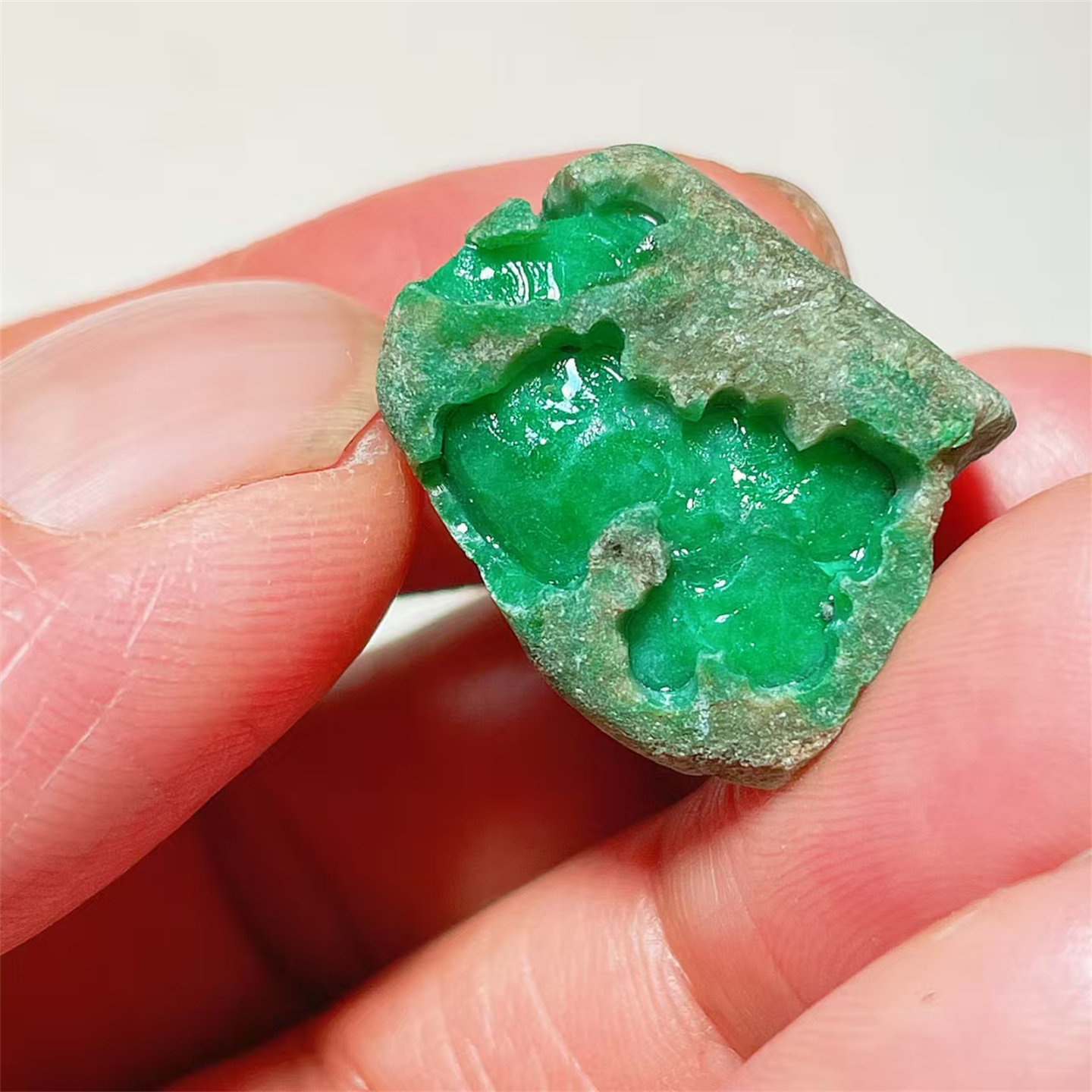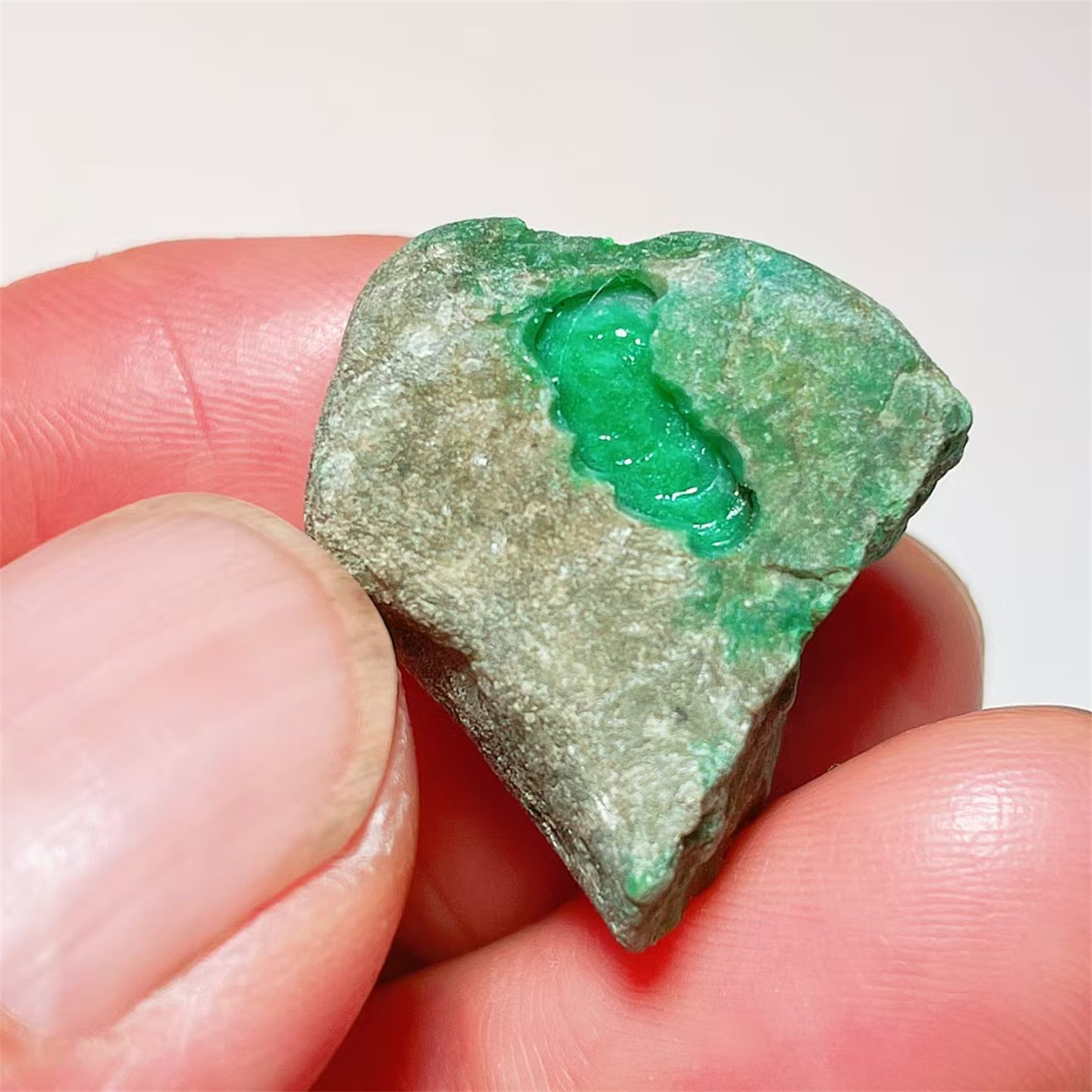 A43 精品缅甸天然翡翠原石老坑后江场口色料戒面料 重11克