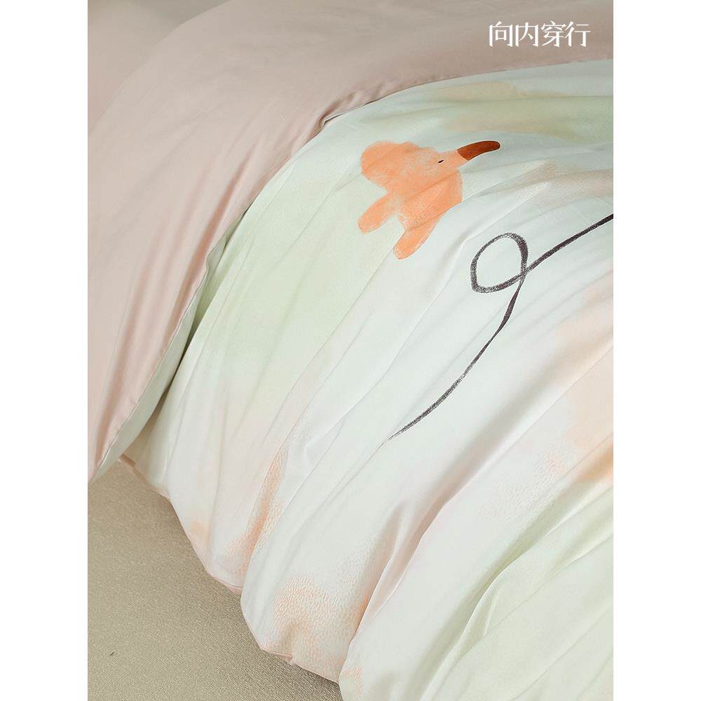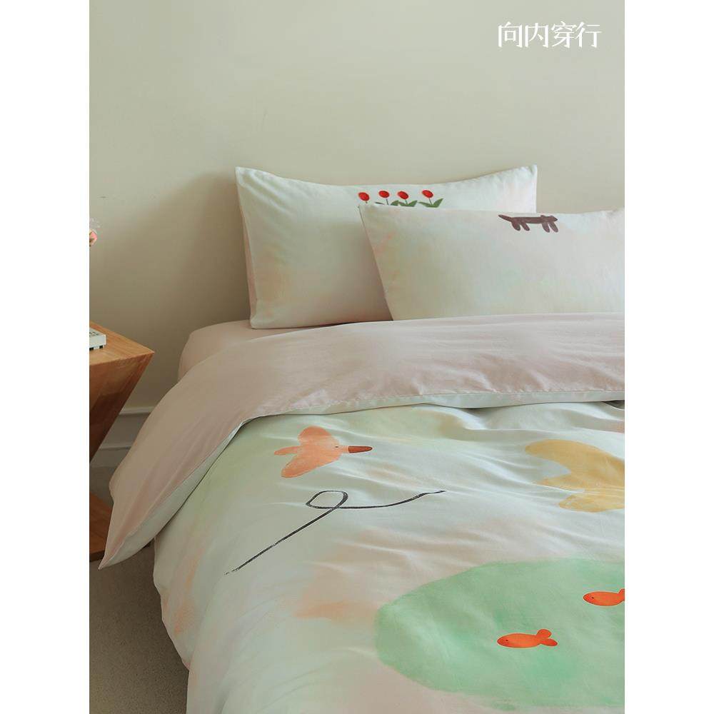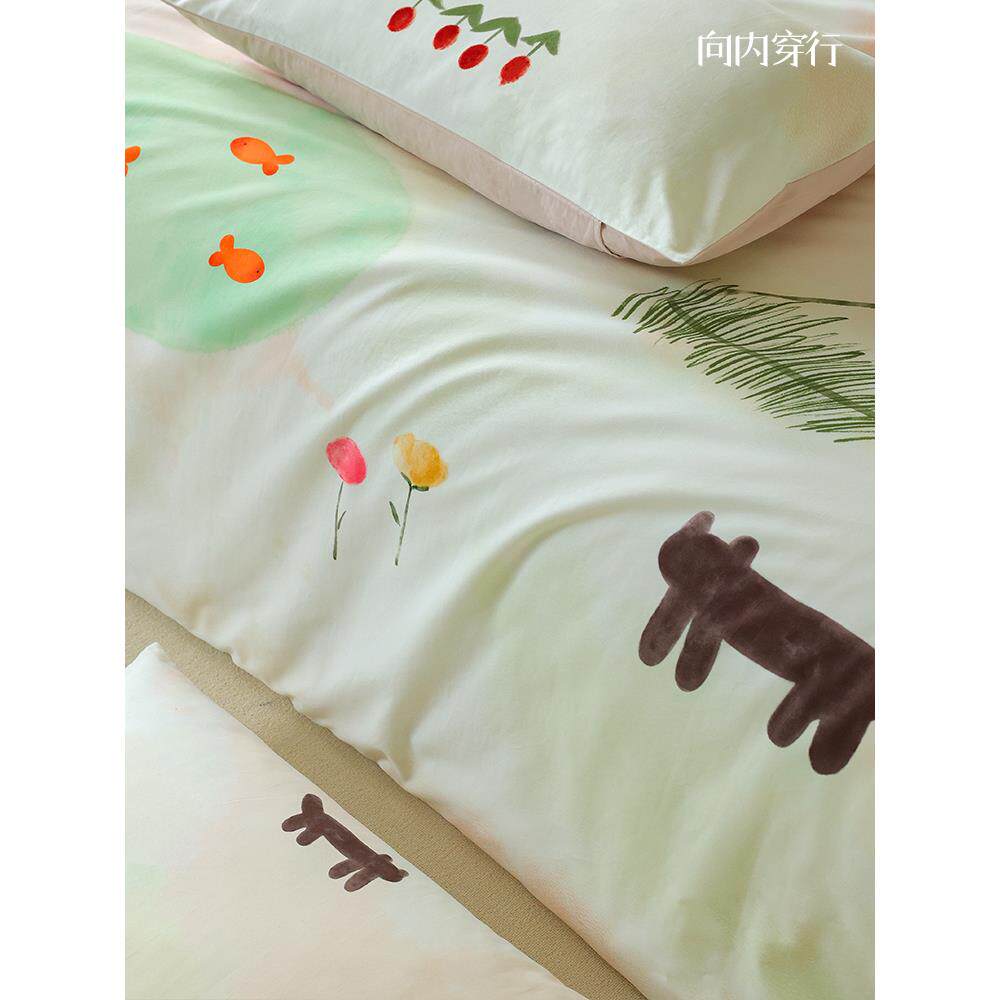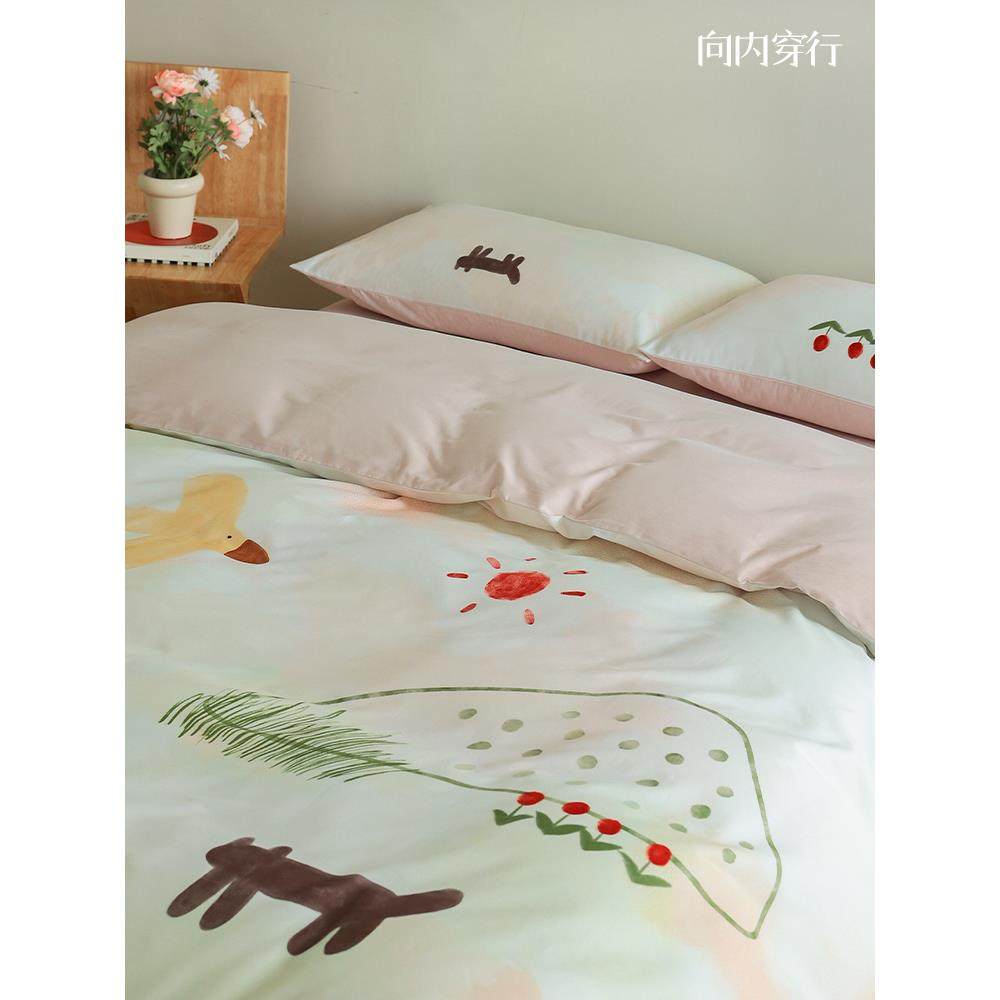 向内穿行A类全棉插画风床上四件套纯棉磨毛床单被套2024新款床品