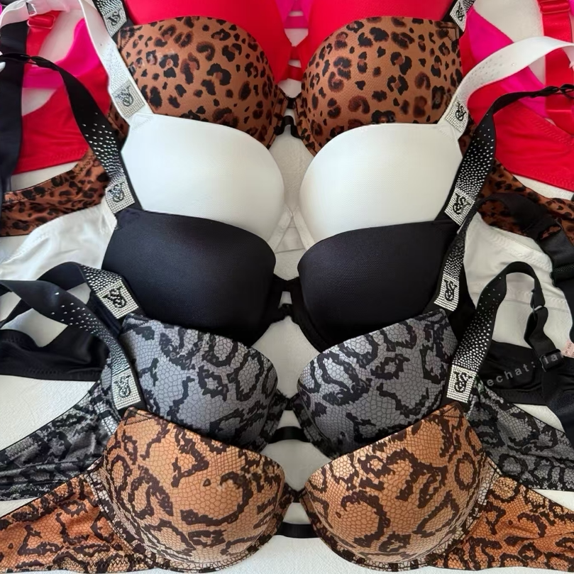维多利亚纯欲性感水钻光面上薄下厚小胸聚拢上托定型聚拢文胸套装
