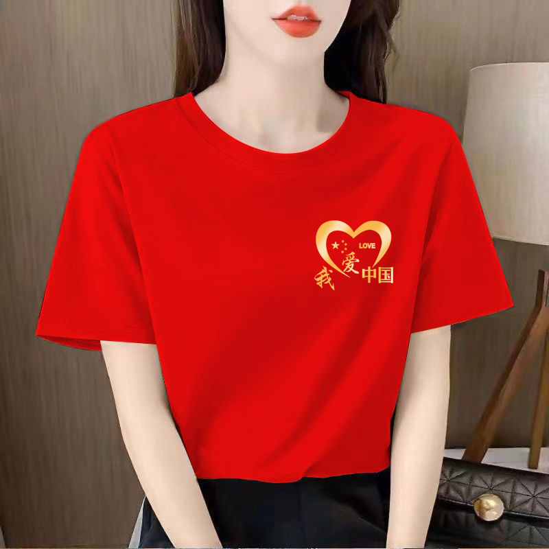 我爱女活动夏季红色上衣短袖聚会班服t恤男女中国七一党建广场舞