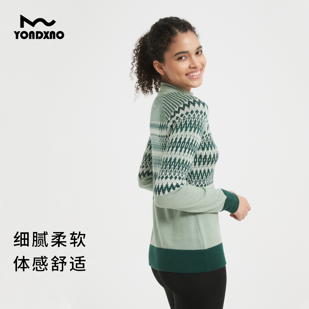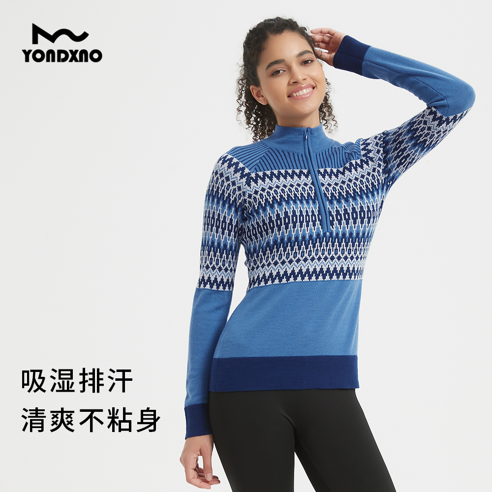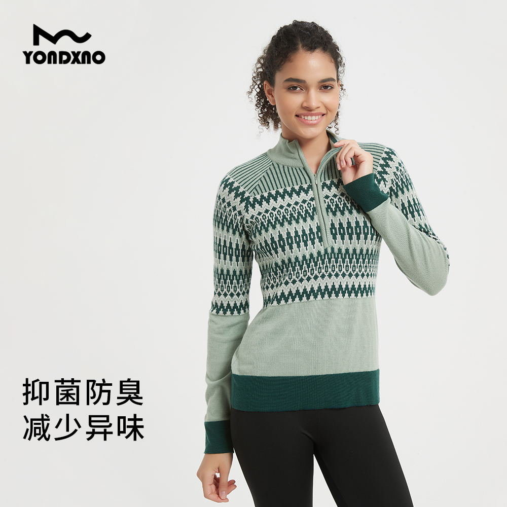 羊小诺美利奴羊毛速干衣女登山保暖长袖美丽诺运动半拉链衫T26