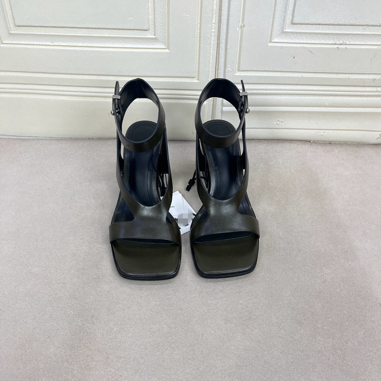 外贸原单女鞋新款时尚方头纯色脚腕绑带粗高跟皮带扣气质时装凉鞋